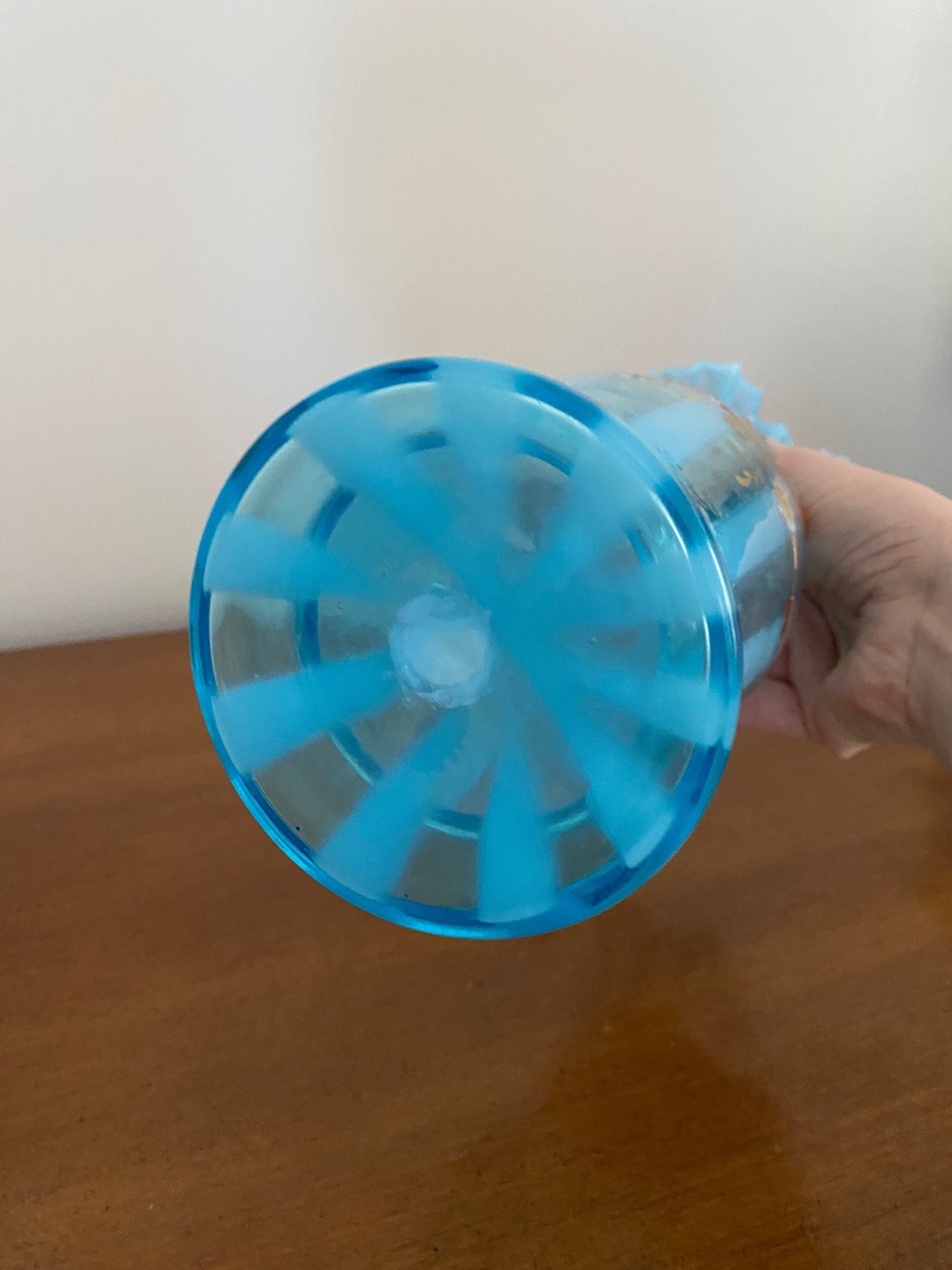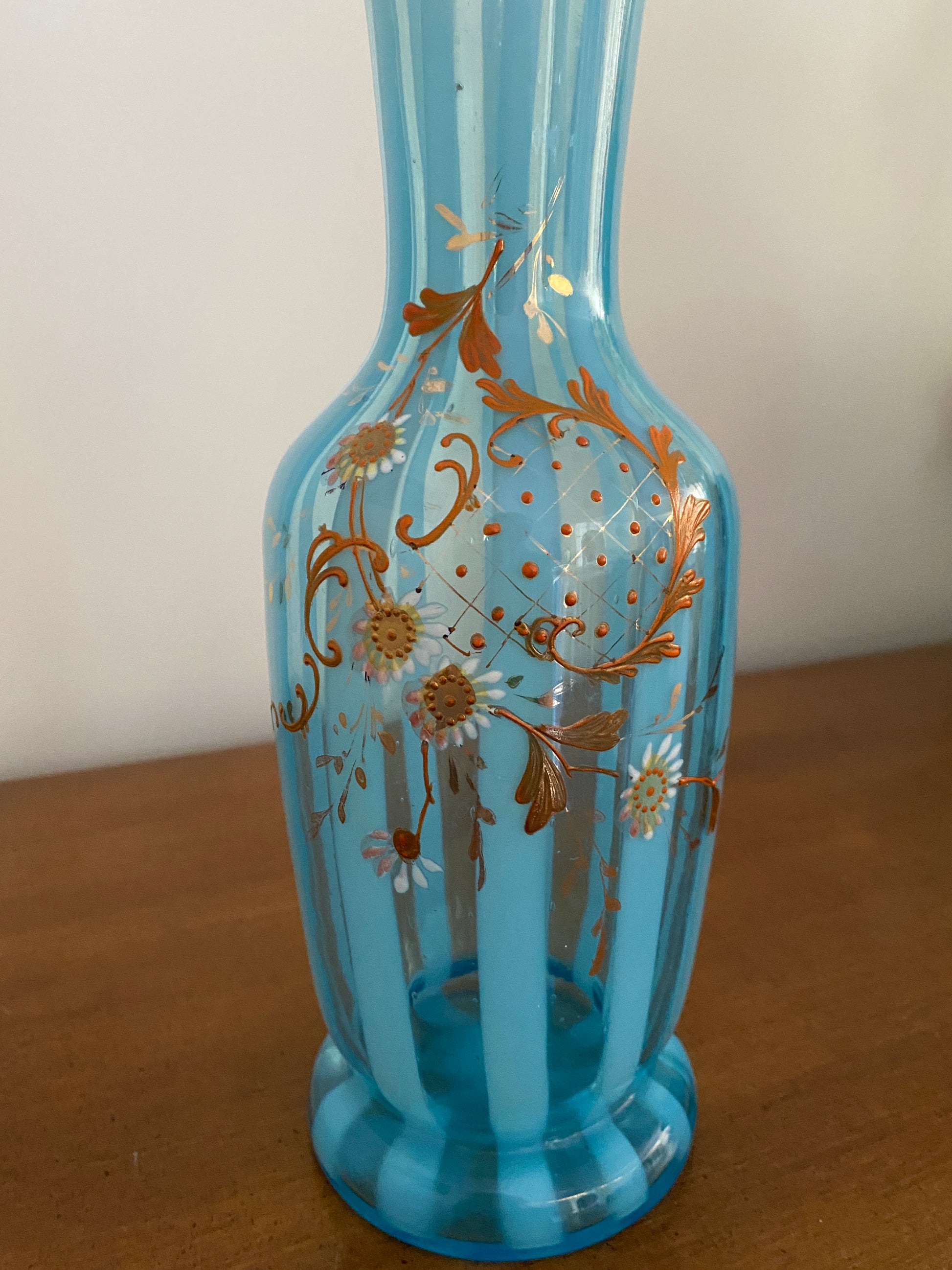 Antique Hand blown Blue Glass Vase with Hand painted Daisies