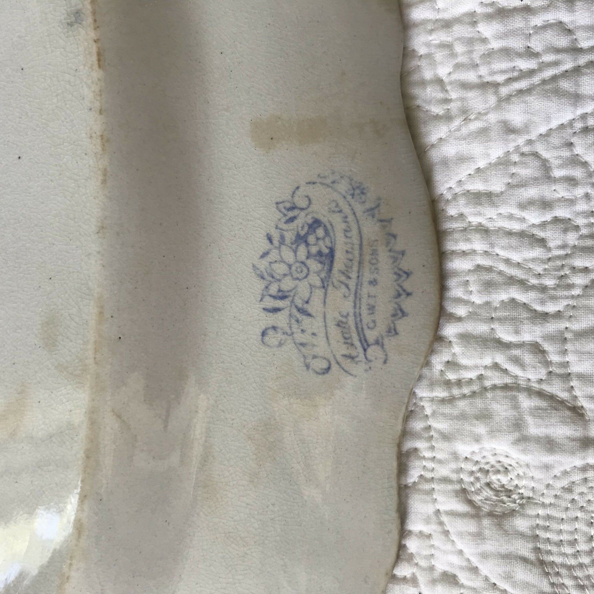 Pretty transferware platter measuring 38cm x32cm. One chip to the rim. Some staining. Printed GWT & Sons on the back.
