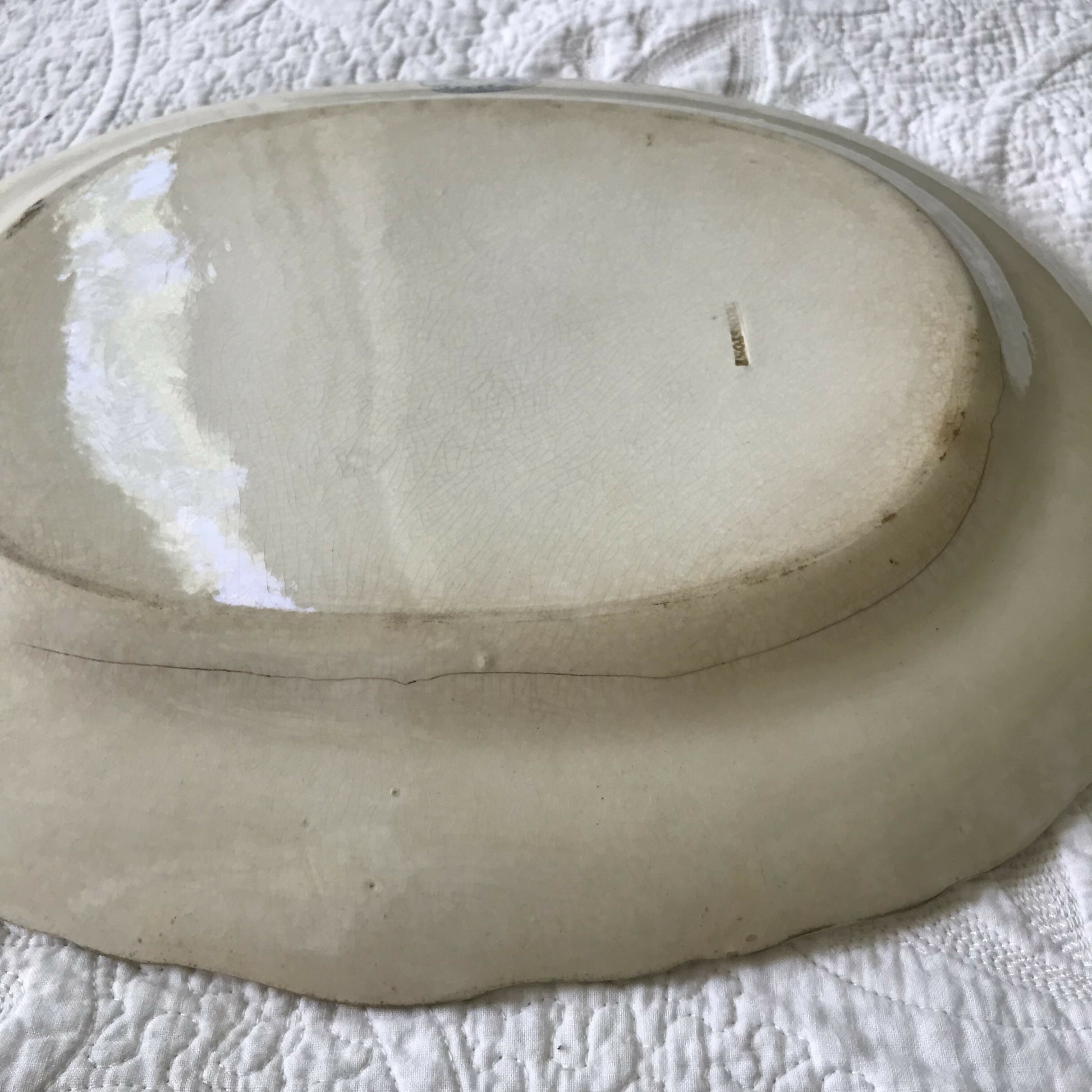 Pretty transferware platter measuring 33cm x 27.5cm. No chips, one crack. Stamped and marked Ironstone, made by Burleigh.