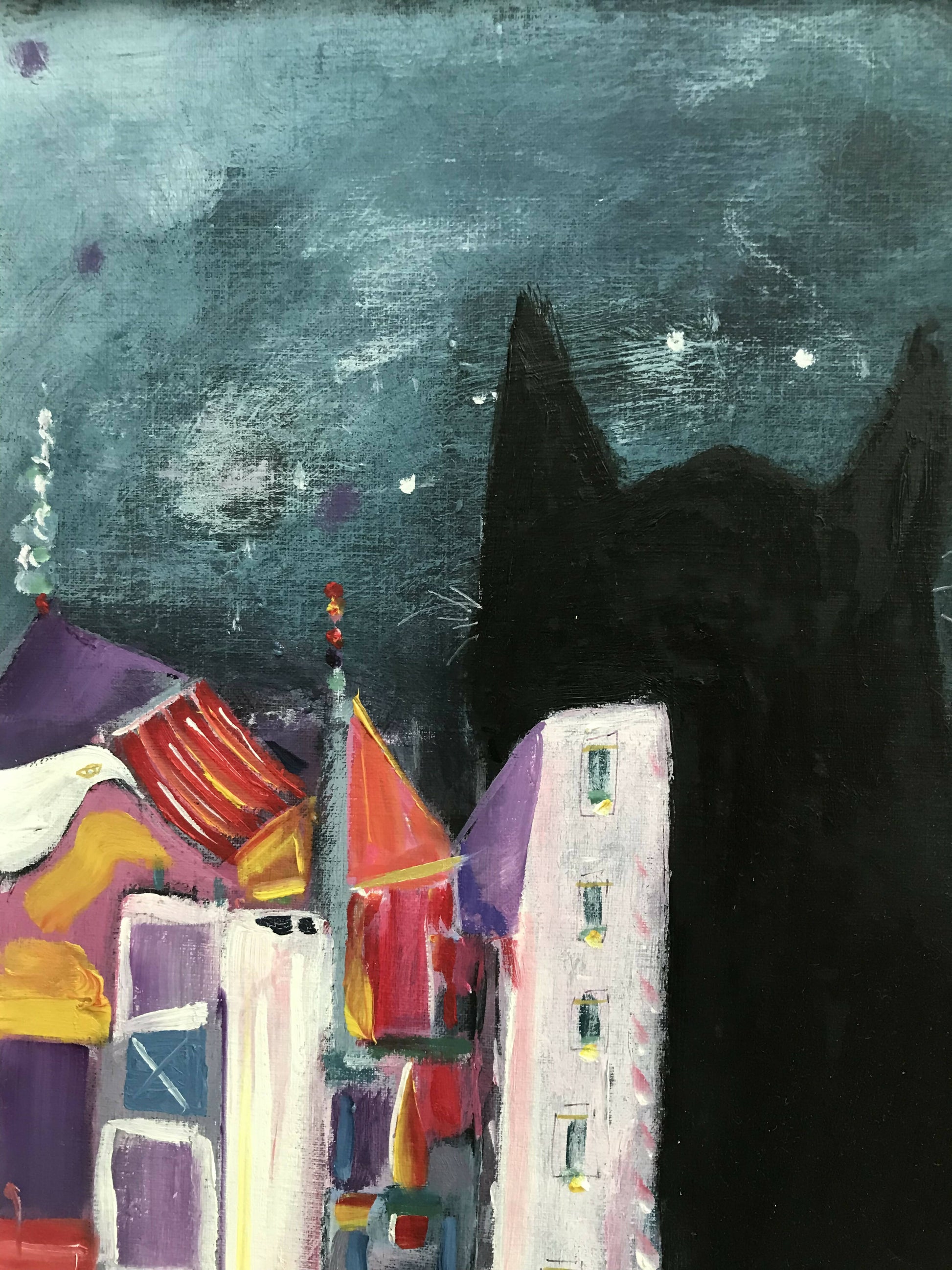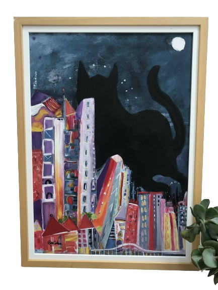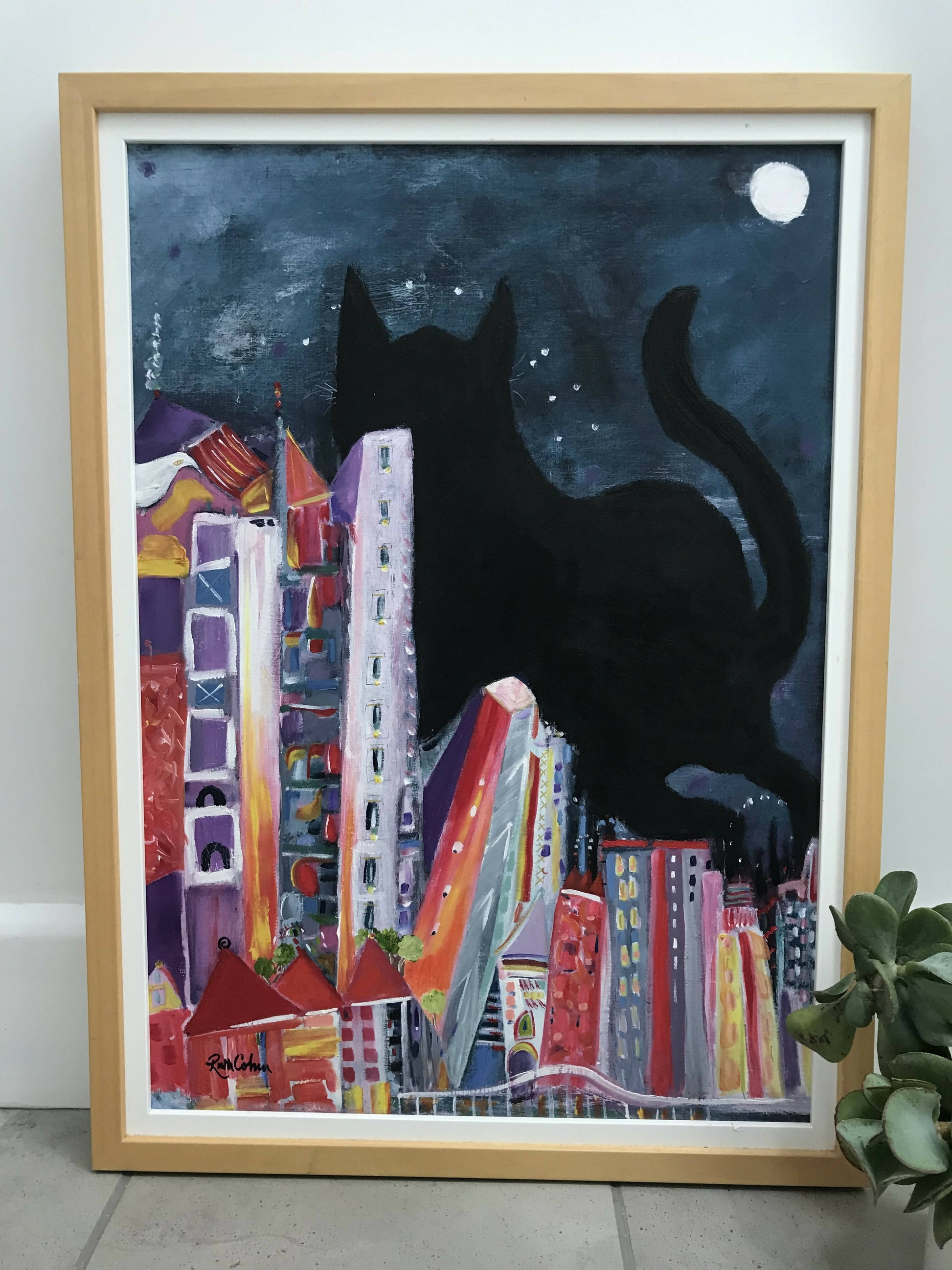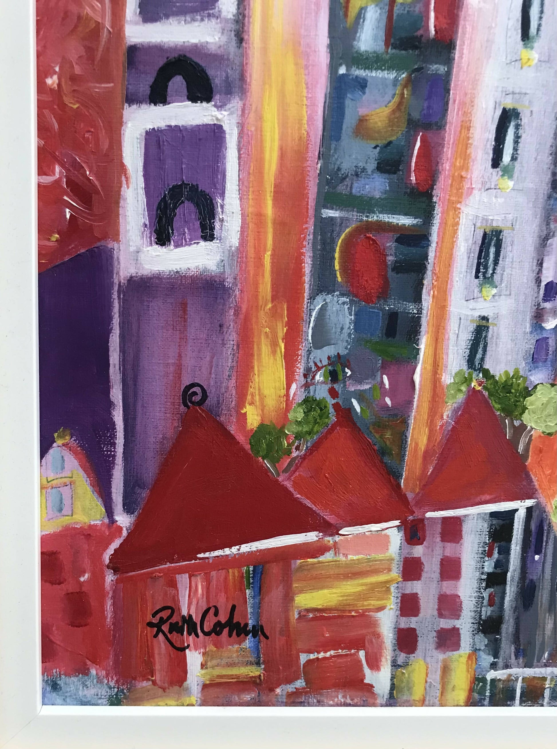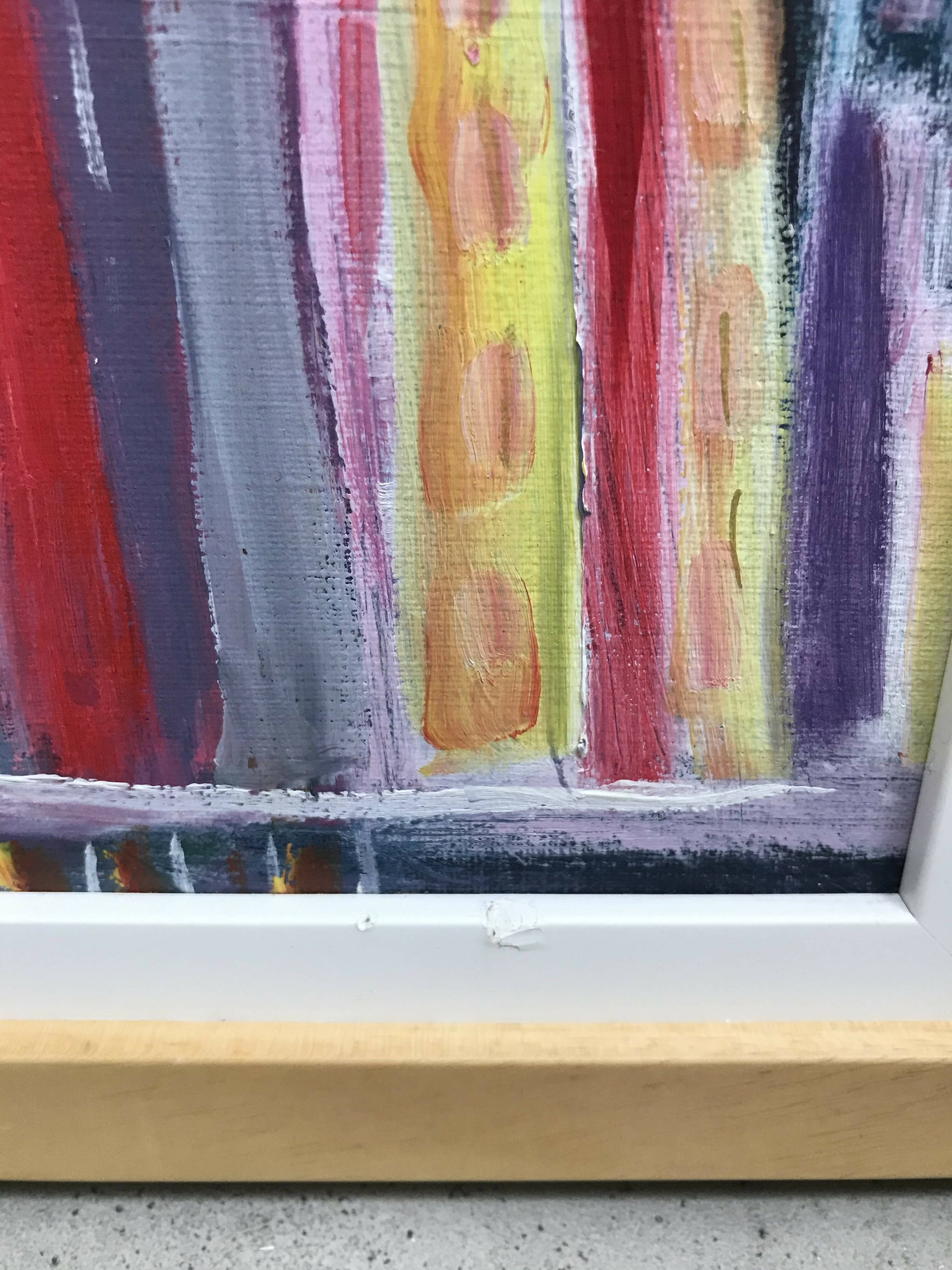 Lively, brightly coloured oil on board by Perth artist, Ruth Cohen. Simply framed, the work is in good condition, the colours are clear and bright. There is one small area of damage to the white mount near the bottom right corner. The work measures 48cm x 66cm. Located in Melbourne and available for pickup or post. Postage will incur an additional shipping charge, payable after purchase is completed. The buyer will be contacted by the seller