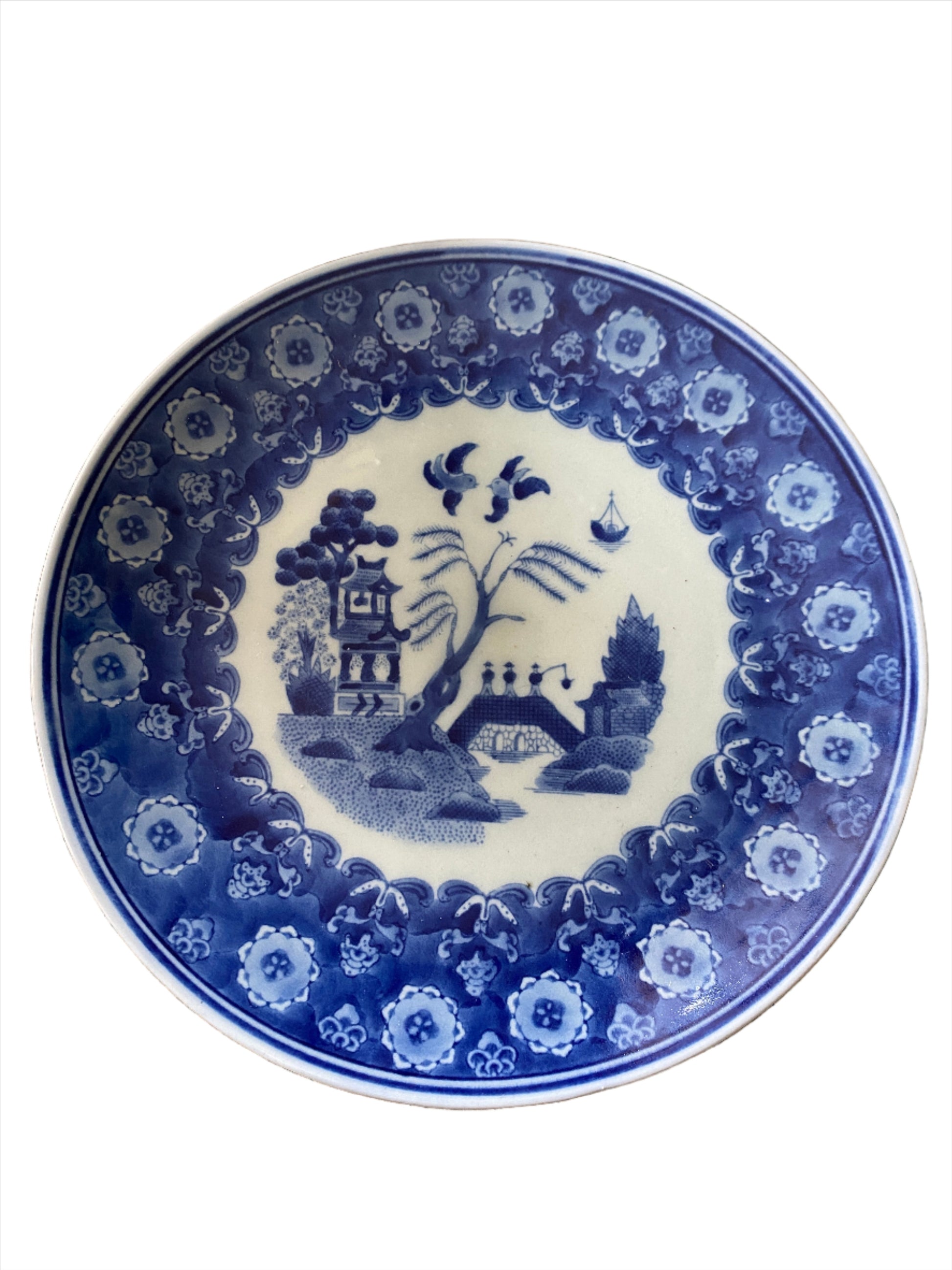 This lovely large and heavy blue and white plate would be stunning on a wall. I have had it in my collection for quite some time. I love the colours so so much. In excellent condition with no damage.