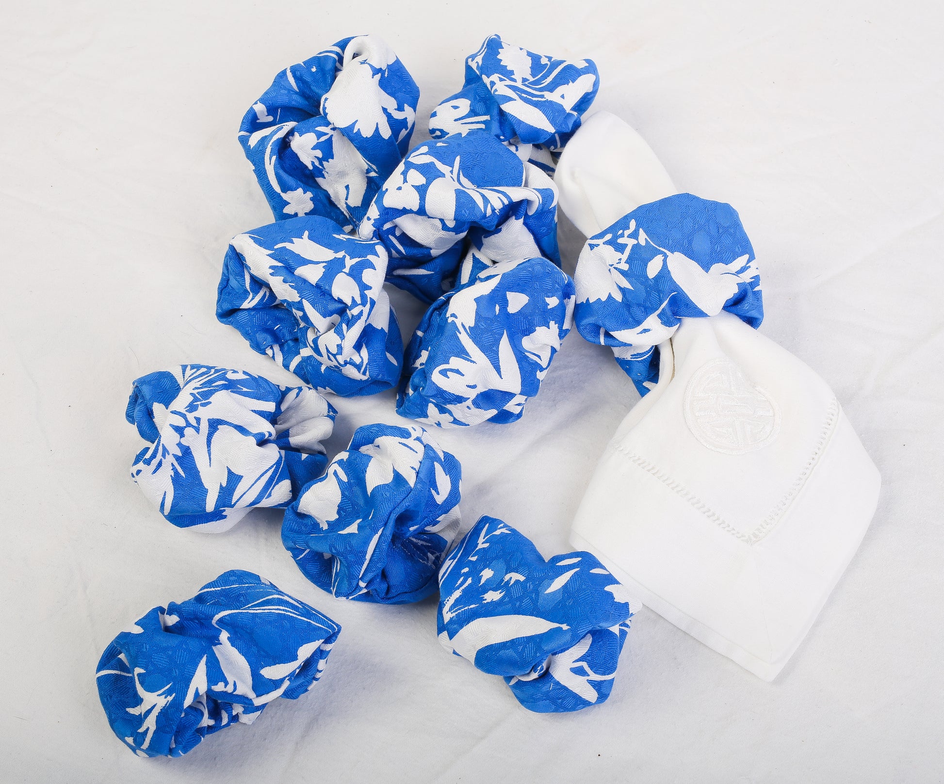 An exclusive Ivy and Piper product our napkin scrunchies are made for low fuss high impact chic tabletops everywhere. Our napkin scrunchies add a fun twist to a napkin ring and come in a matching set of 6.