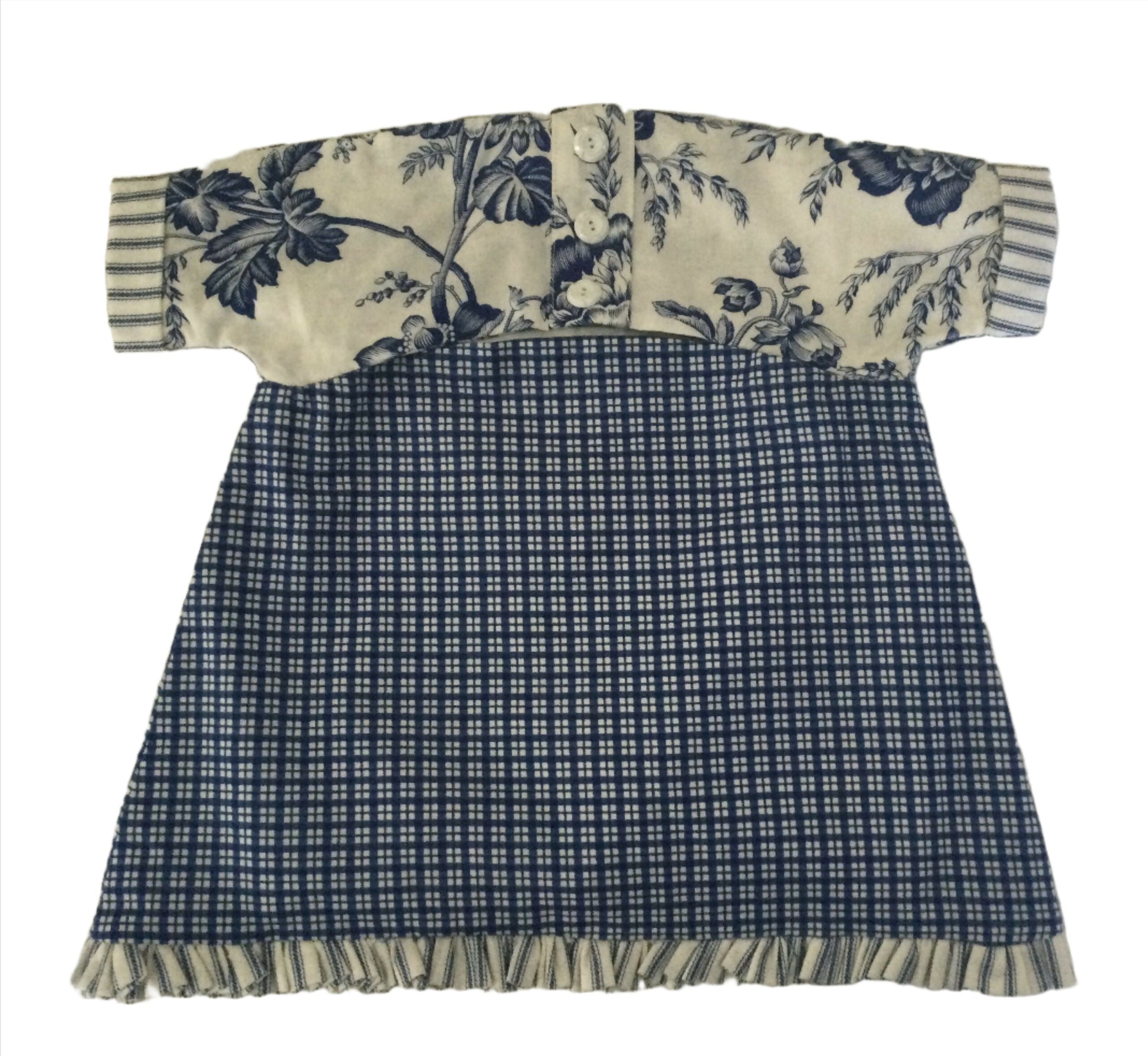 Gorgeous blue and white fabrics, including mattress ticking, check and floral types have been used to make this hand made peg holder for your laundry room.