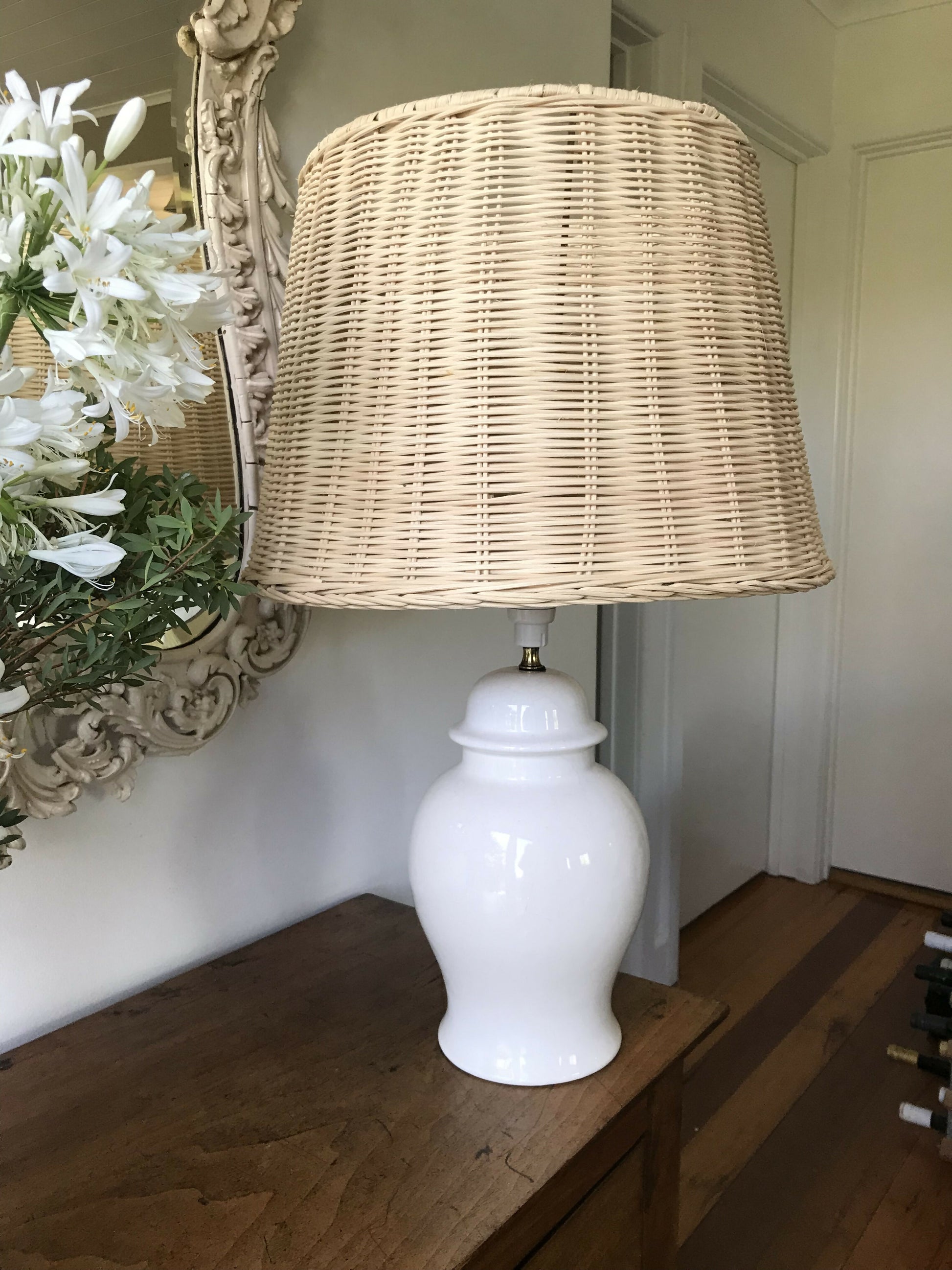 You can’t go wrong with a simple ginger jar lamp; an absolute design classic! This one is crazed white ceramic. Only the base is being sold here, but has been teamed with a couple of different shades for ideas. For QLD buyers may I suggest a bespoke shade by a Clayfield seller, Jodie Milton? She can be contacted by using the “ask a question” feature on any of her listings.
