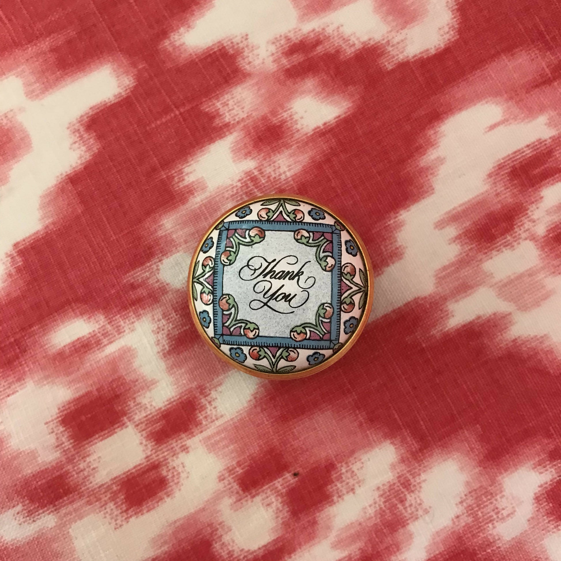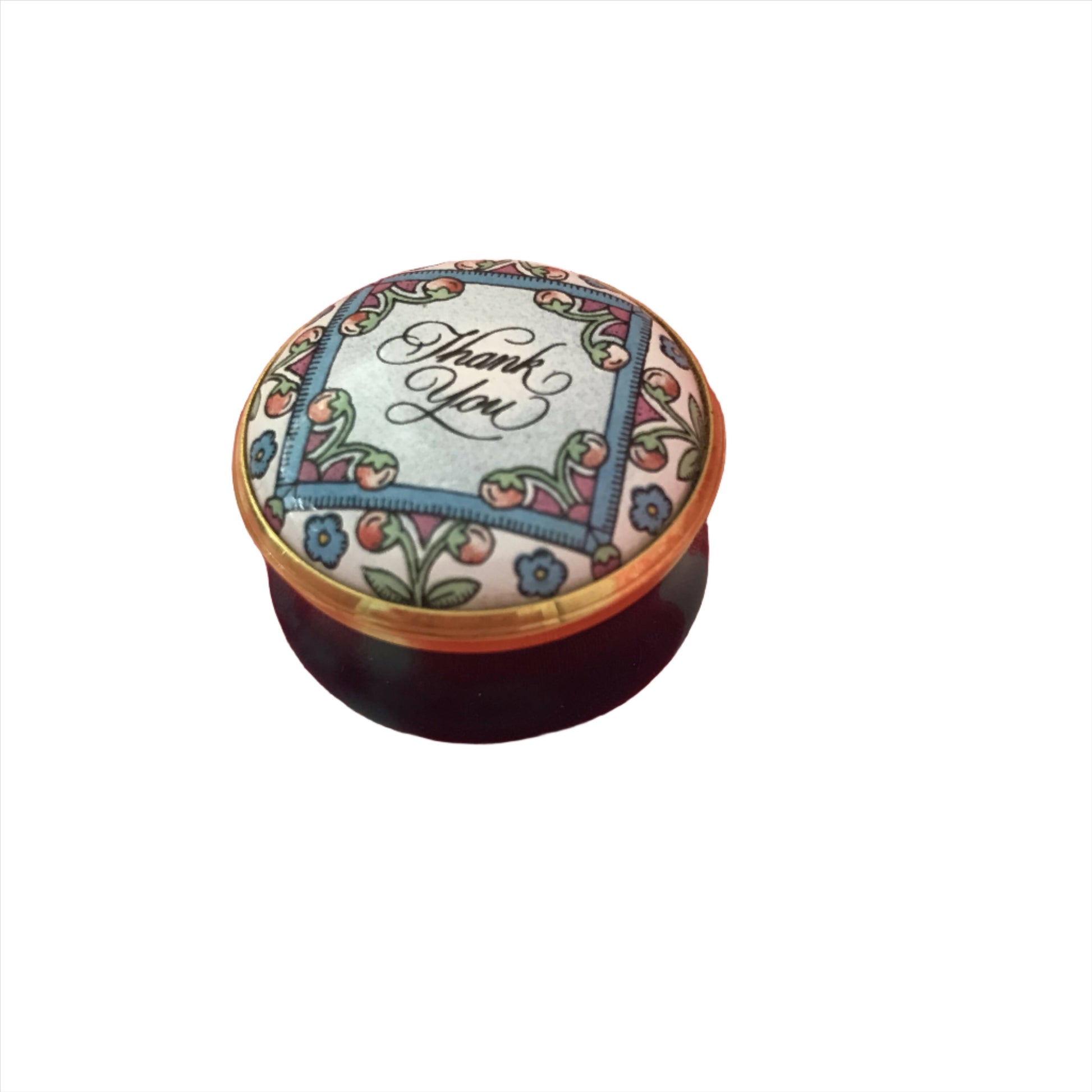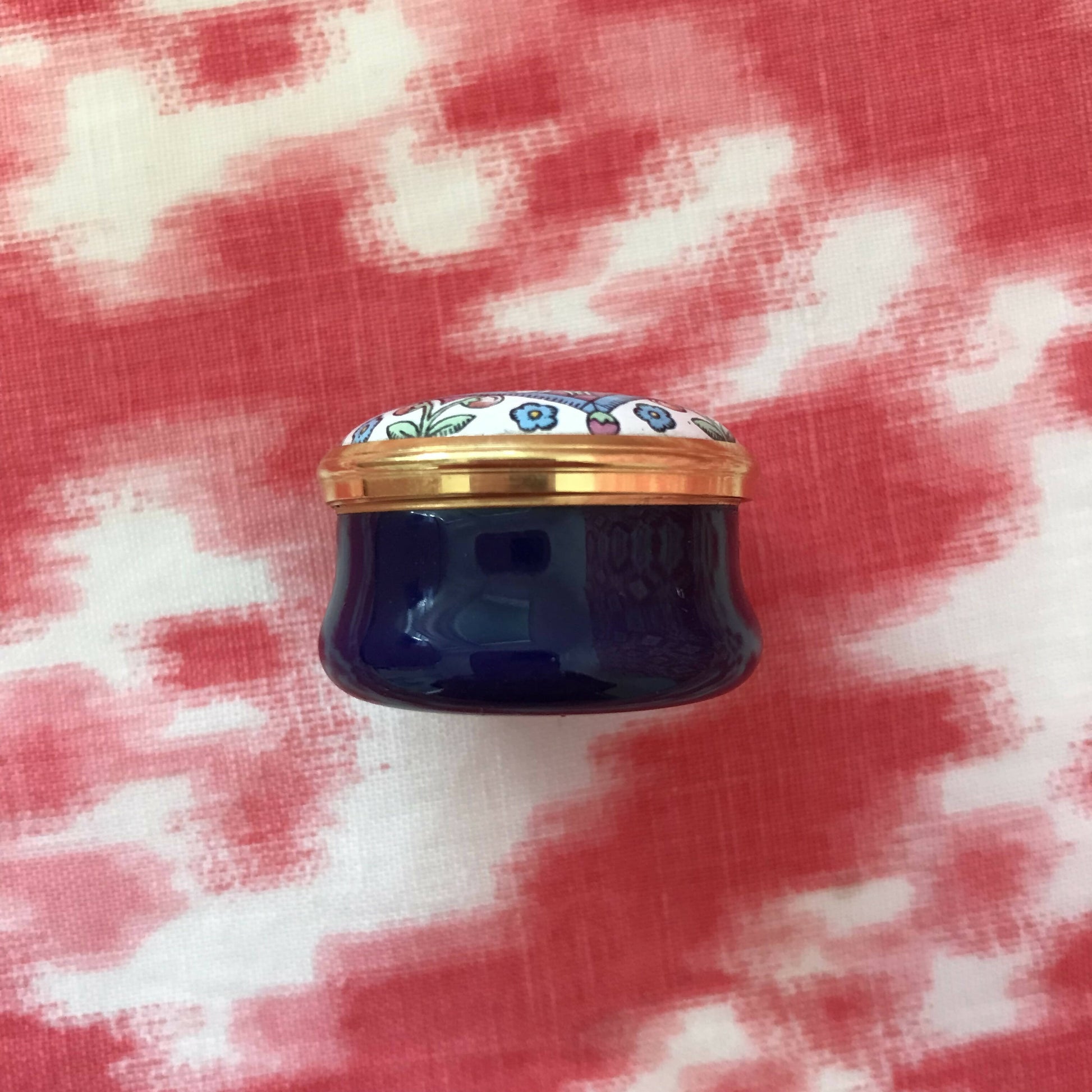 Beautifully detailed little pillbox. Perfect as a gift (or to add to your little side table collection)!