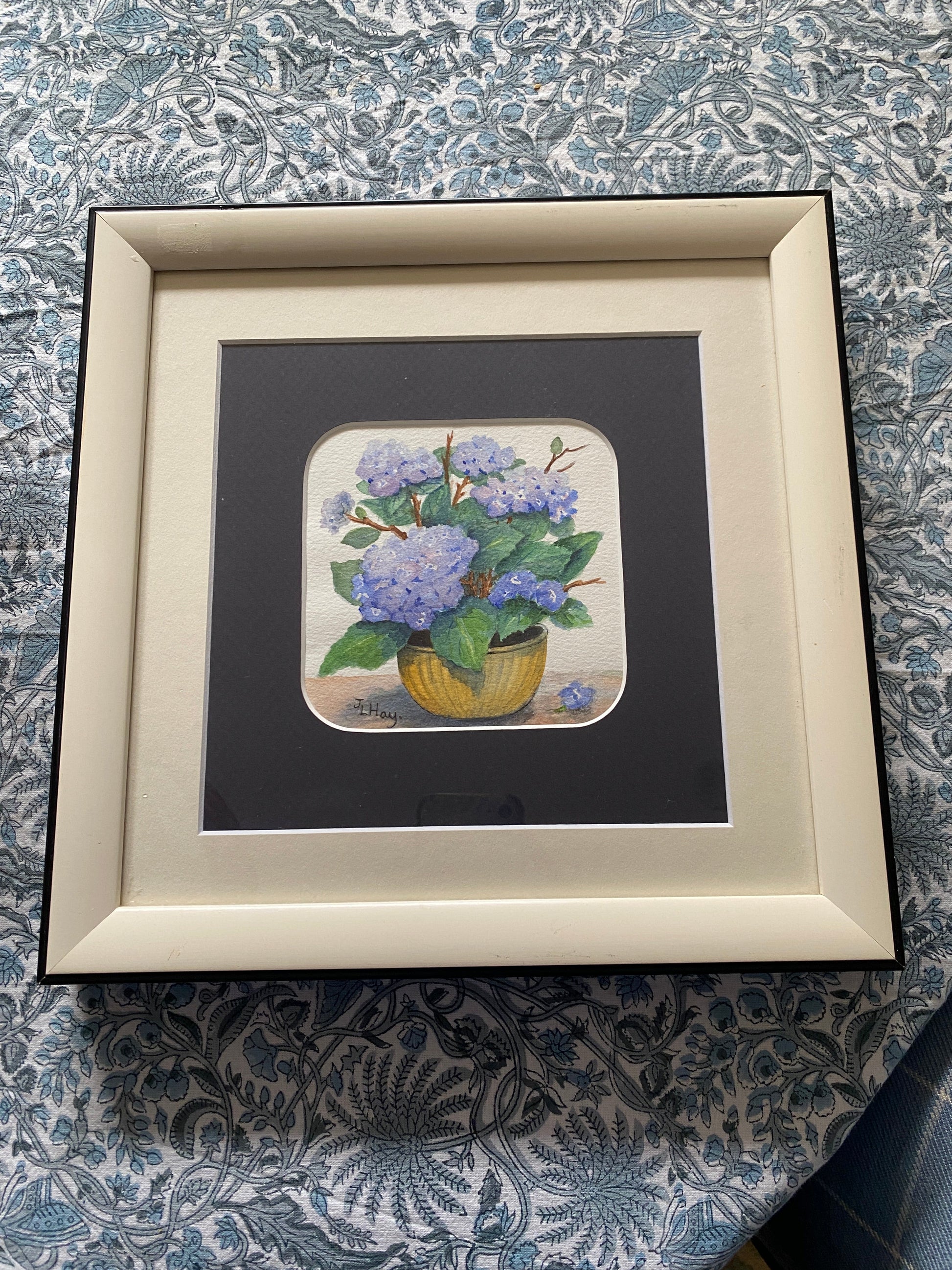 Sweet small hydrangea artwork. Ready to hang. A nice small piece for any wall.