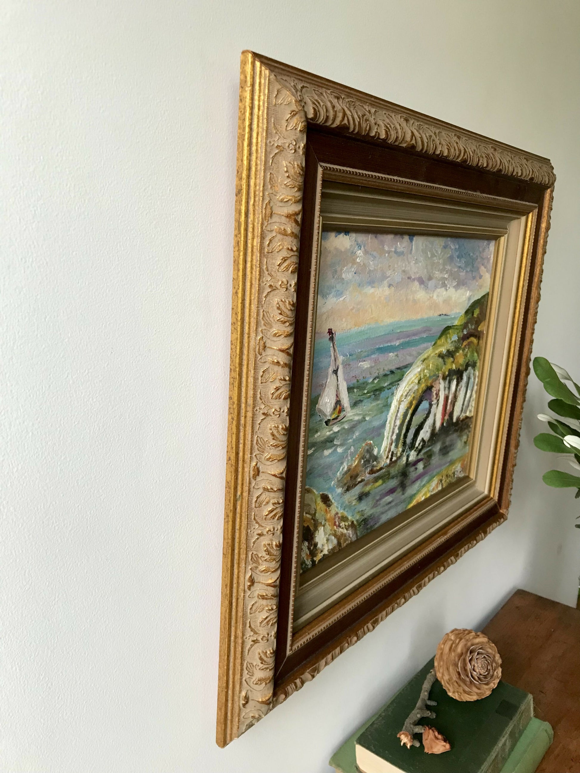 So vibrant and colourful! This original impressionist style work depicts a coastal scene. Signed M Dacey and framed in a lovely vintage gilt frame. Measures 54cm x 49cm. Located in Collingwood, Vic, this artwork is available for pickup or post. Postage will incur an additional shipping cost, payable after purchase is complete. The buyer will be contacted by the seller.