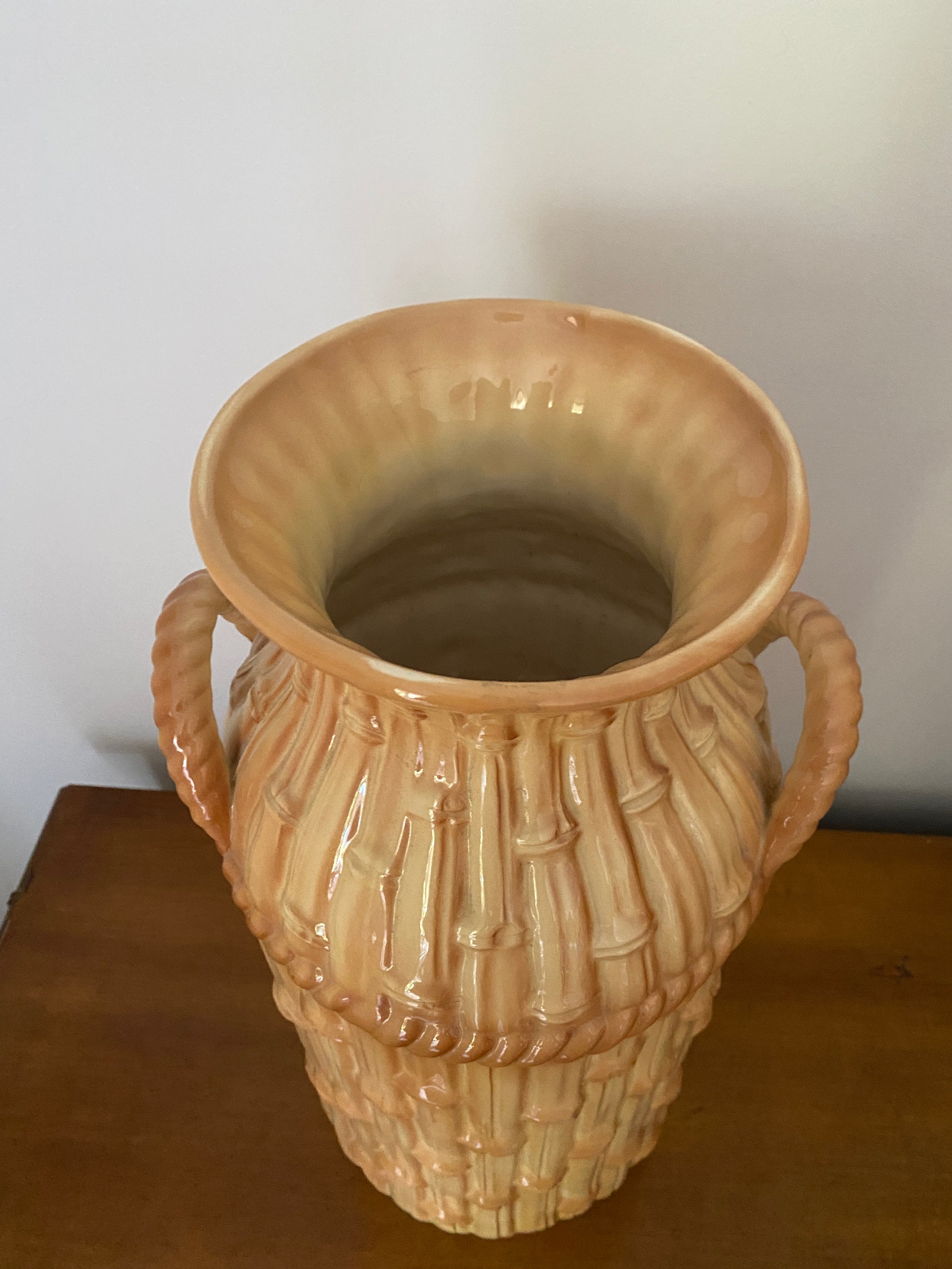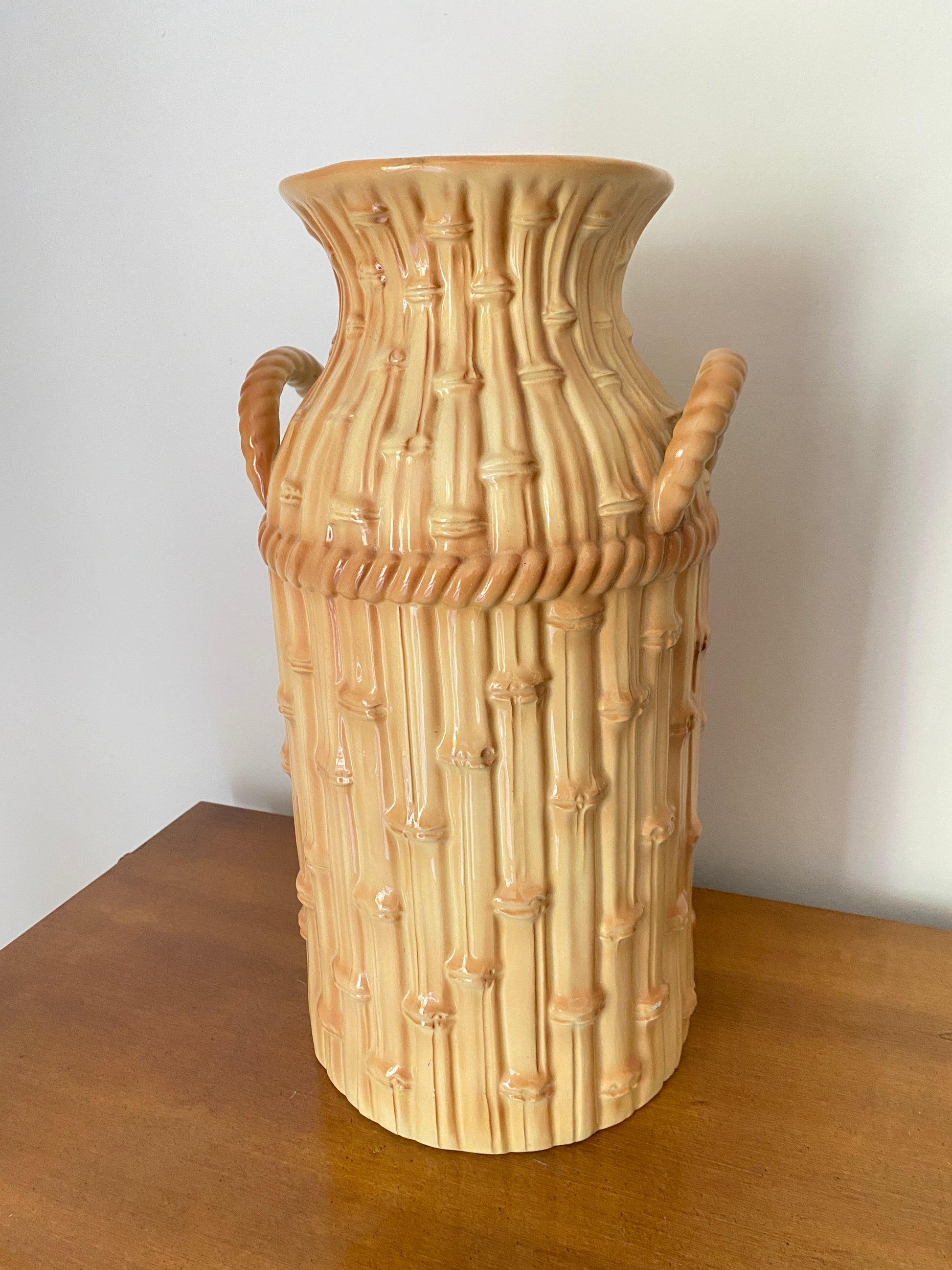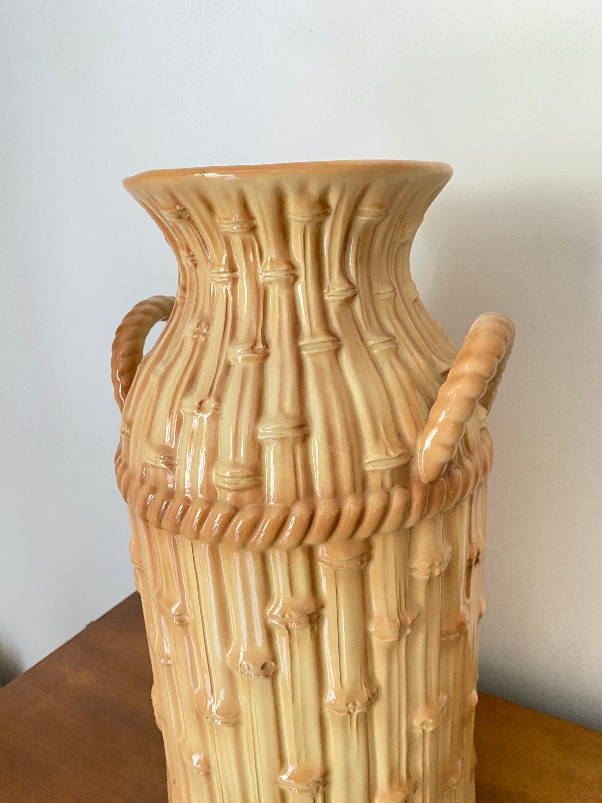 Gorgeous large ceramic faux bamboo vessel/vase.