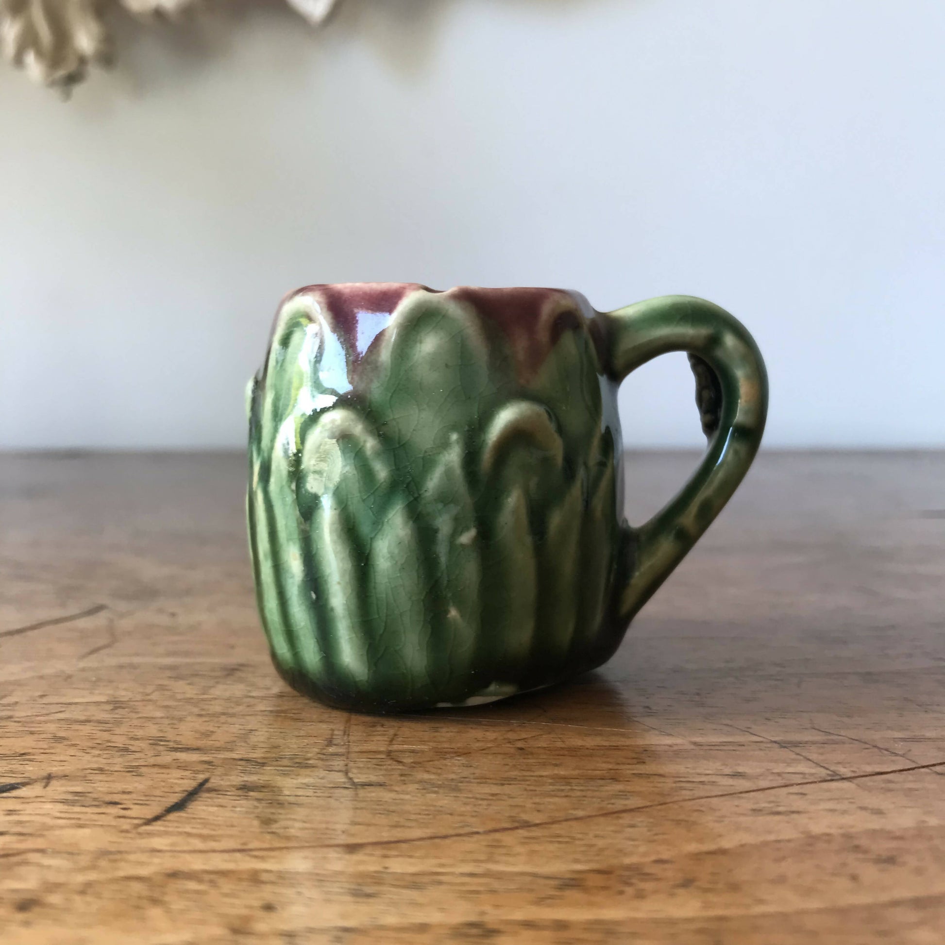 Sweet little miniature majolica mug. No chips or cracks. Measures 4.5cm x 4.5cm excluding handle. Located in Melbourne and available for pickup or post. Postage will incur an additional shipping charge, payable after purchase is completed. The buyer will be contacted by the seller