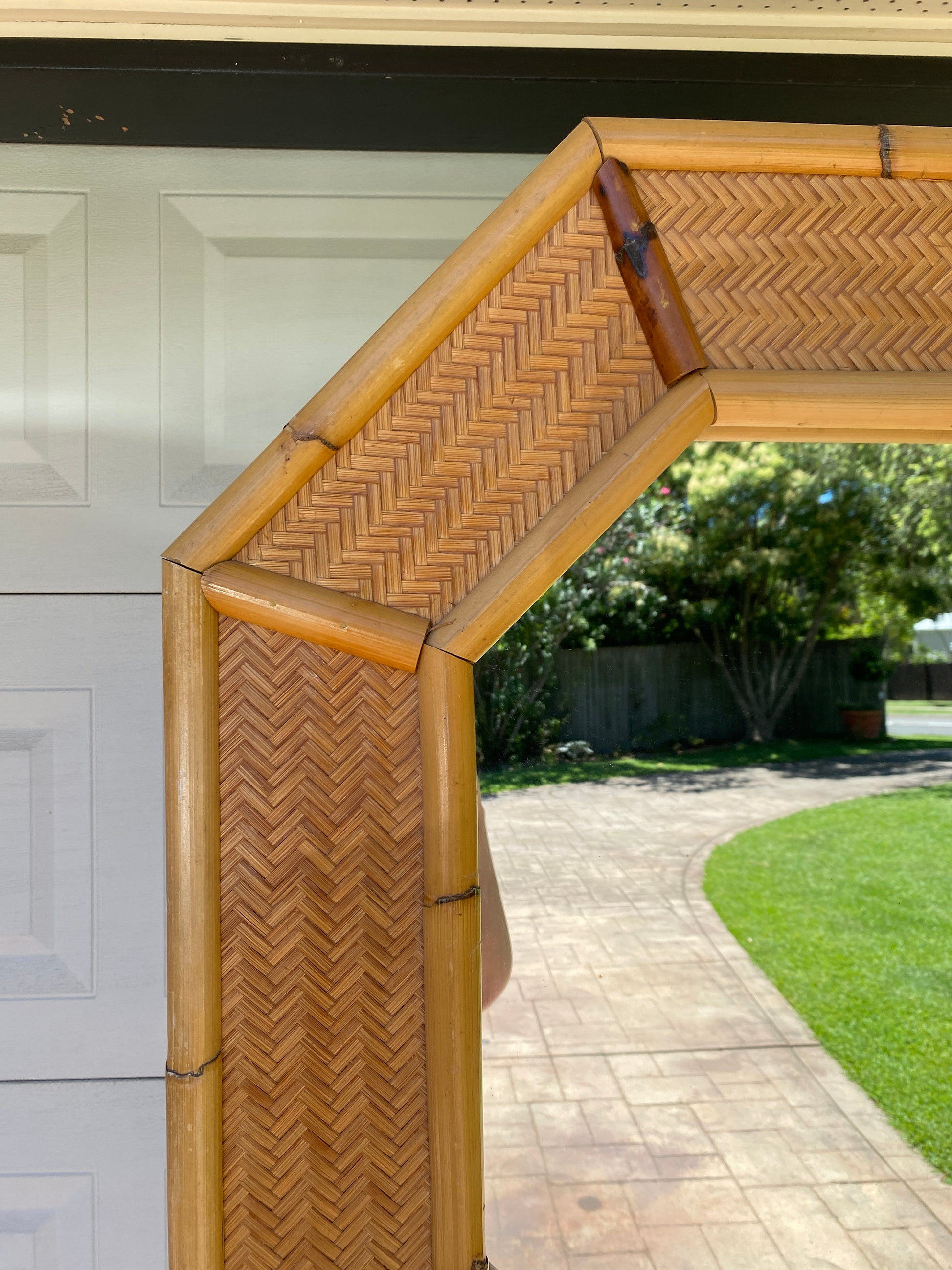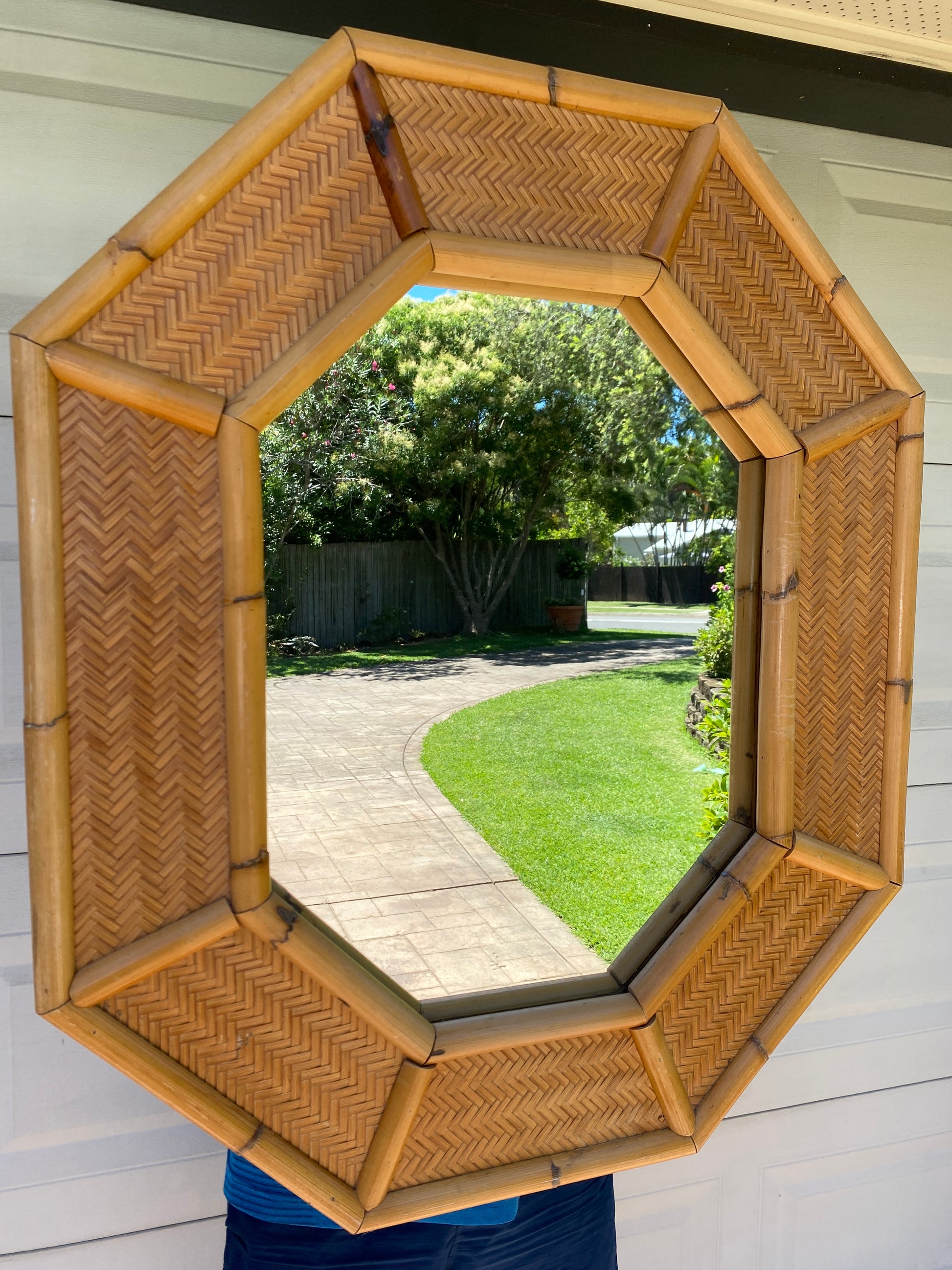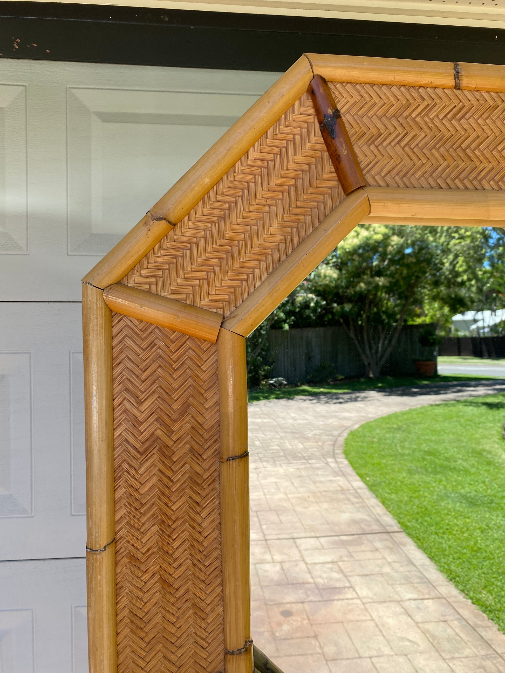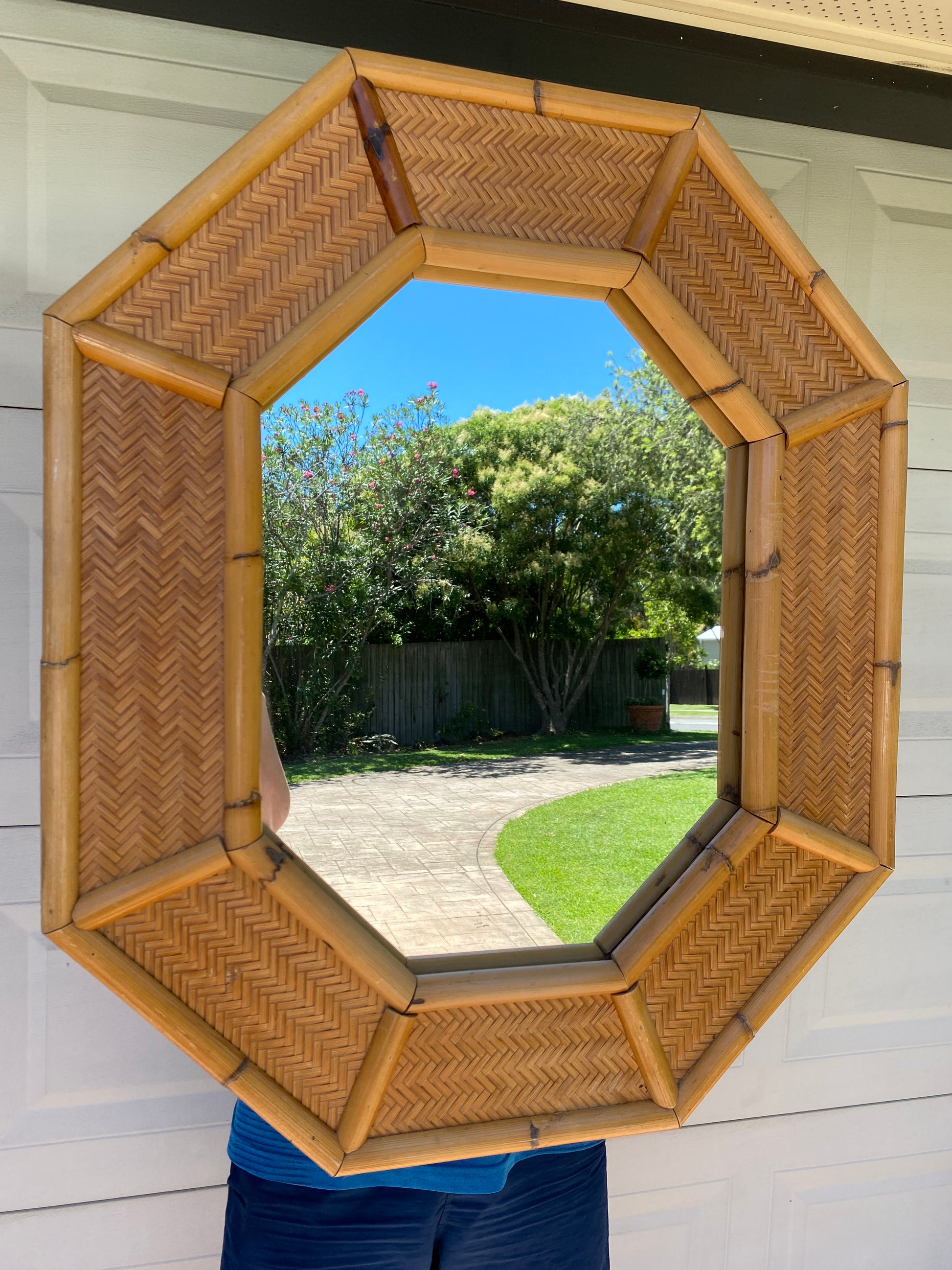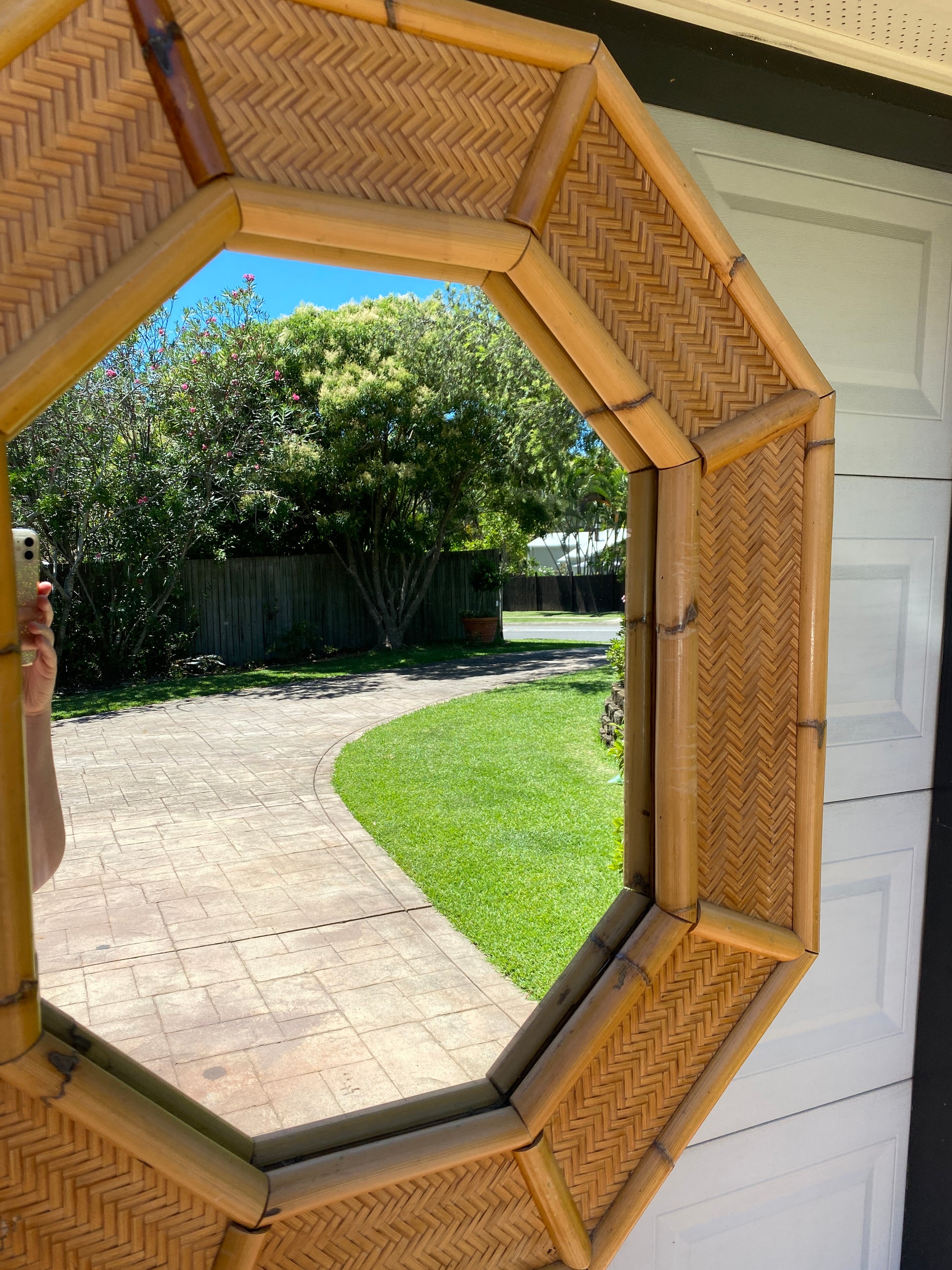 Octagonal bamboo & cane mirror