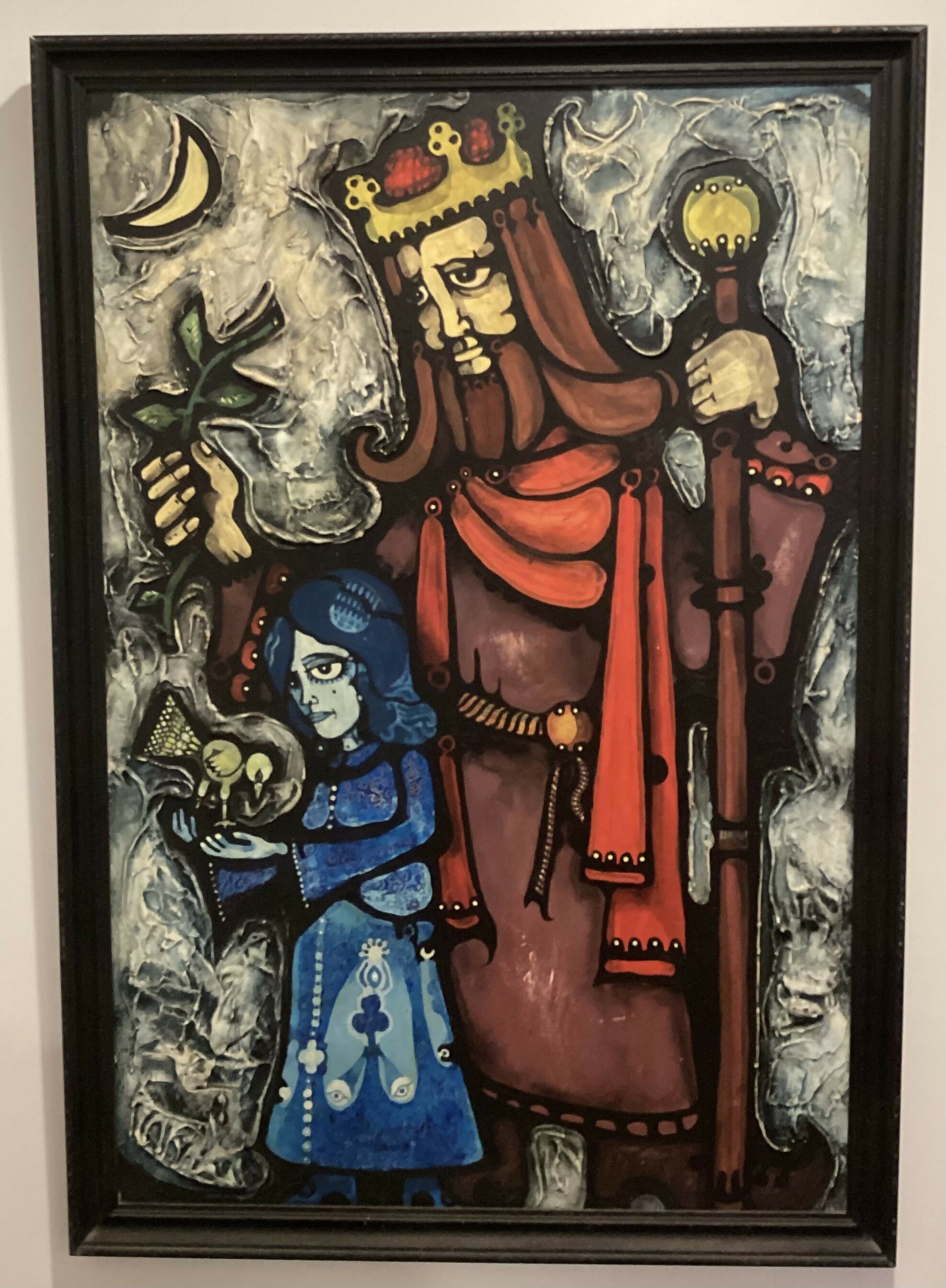 The King and Blue Child original oil painting by Michael Salmon, born 1949. Painting was completed around late 1970’s.