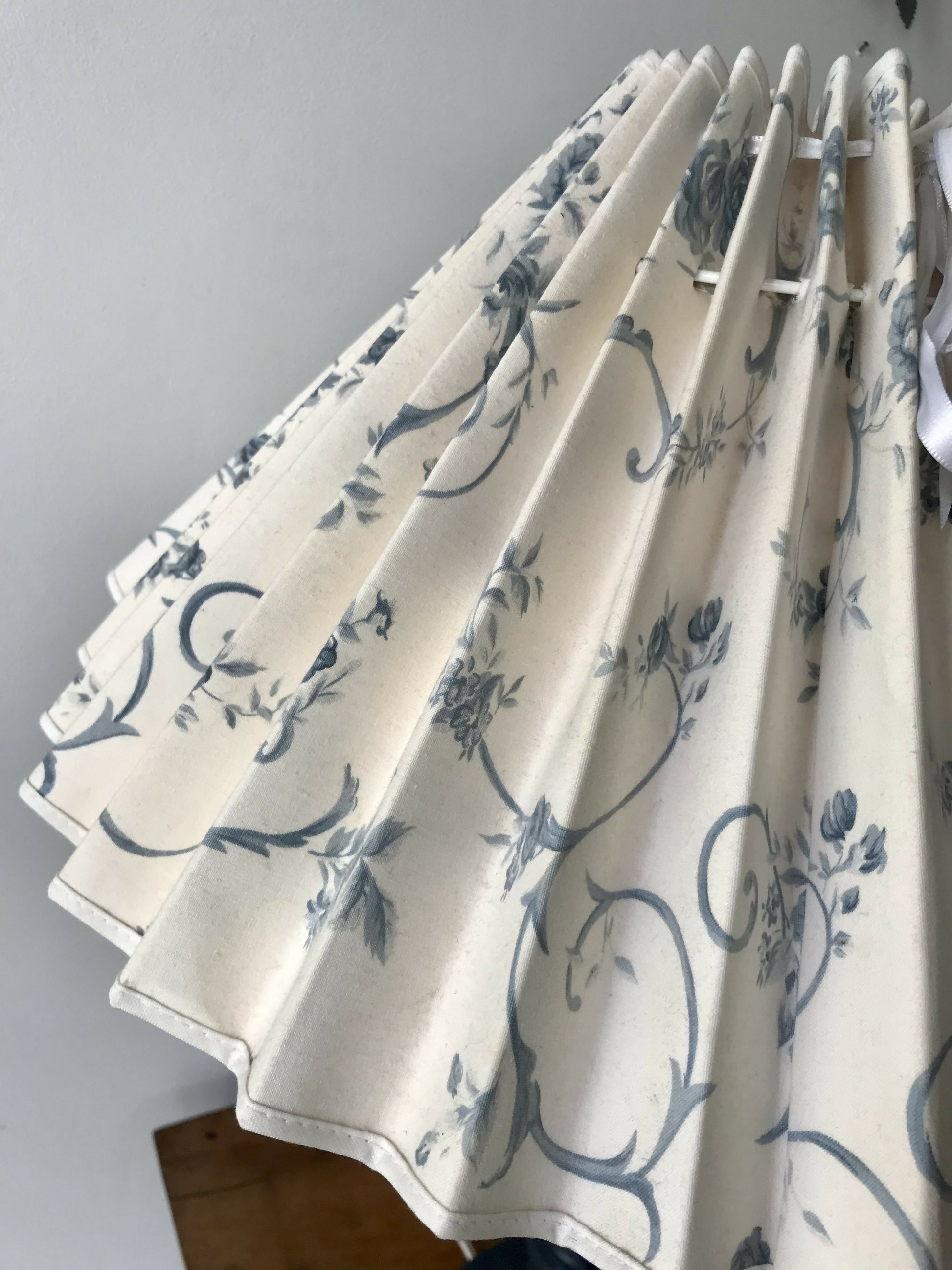 The base stands 55cm high to the top of the bayonet fitting. The shade and base stand 68cm high and the pleated shades are approx 45cm at their widest diameter.