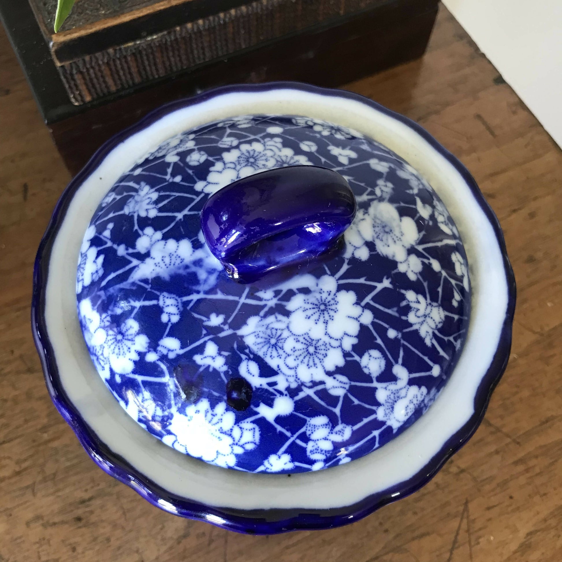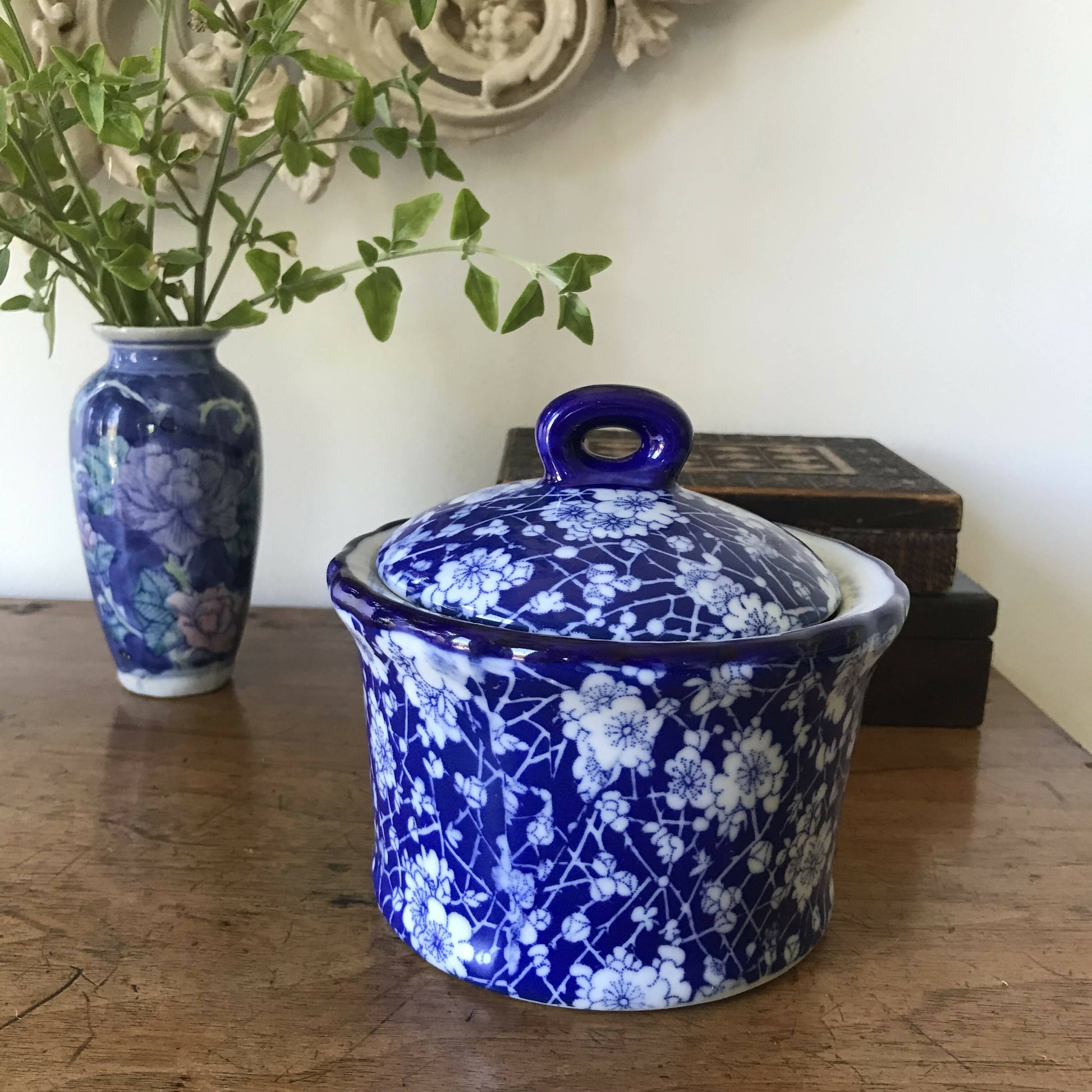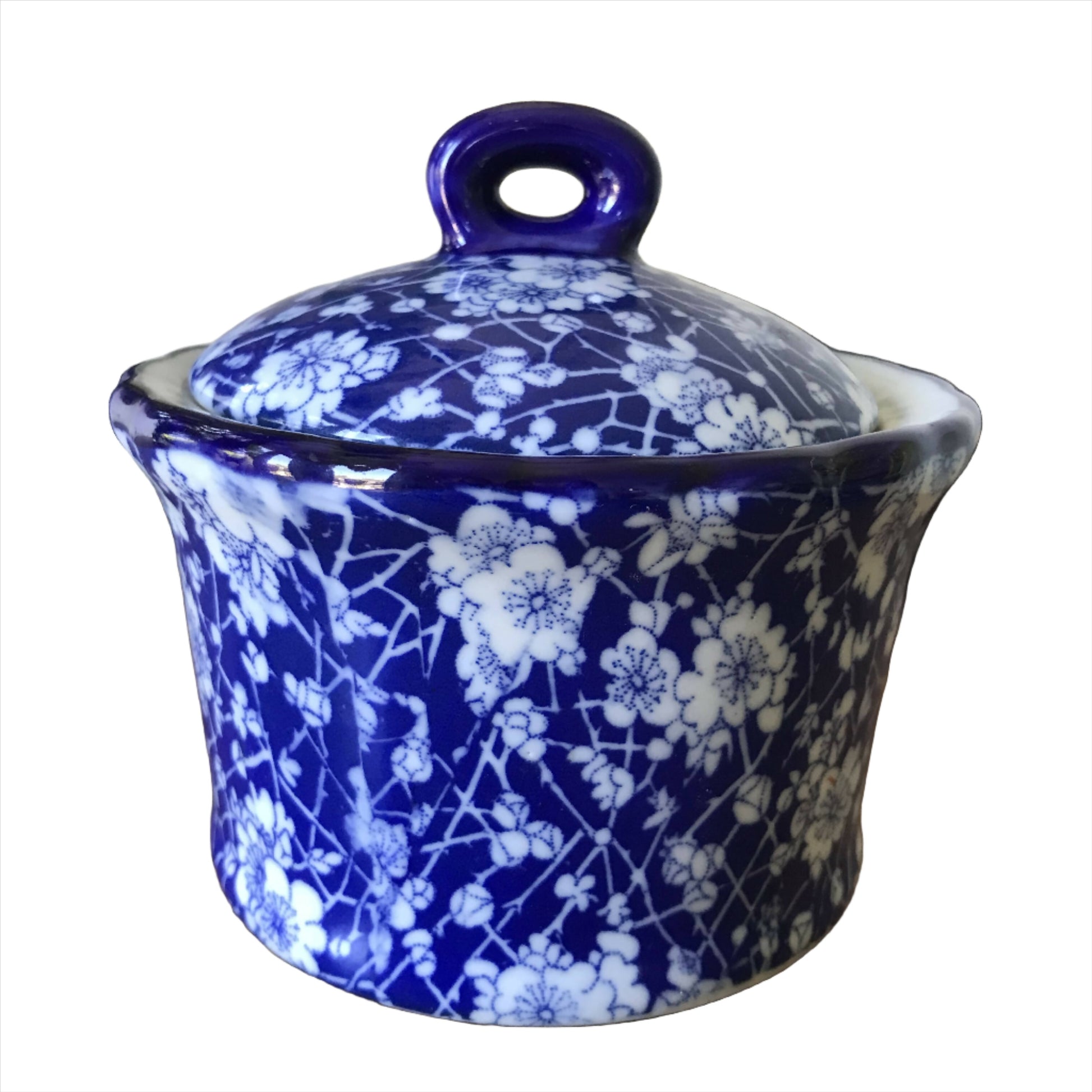 Plum blossom is a classic design; always pretty. Used here to decorate a useful lidded container. No chips, cracks or staining. 14cm diameter x 12cm high. Located in Melbourne and available for pickup or post. Postage will incur an additional shipping charge, payable after purchase is completed. The buyer will be contacted by the seller