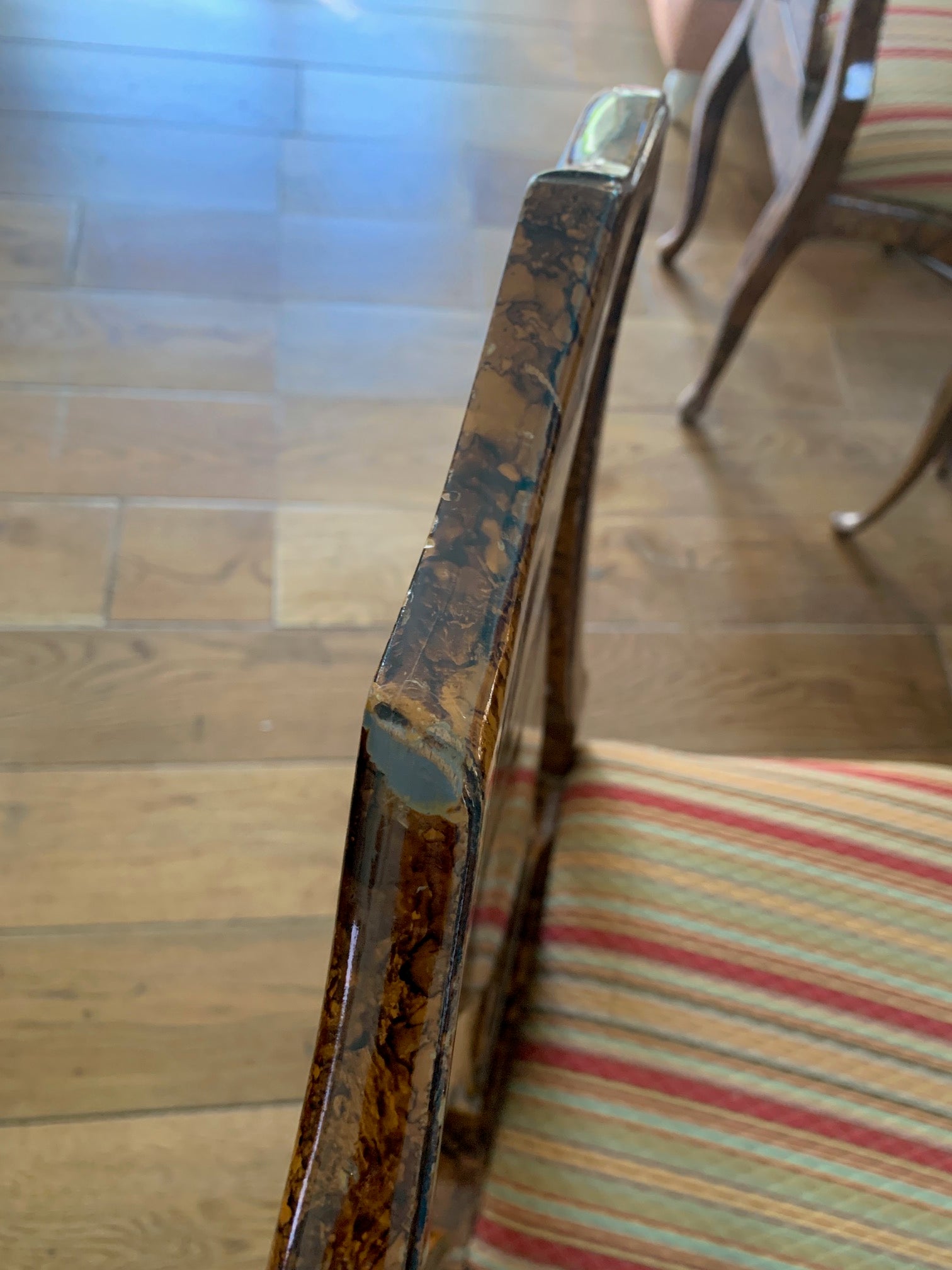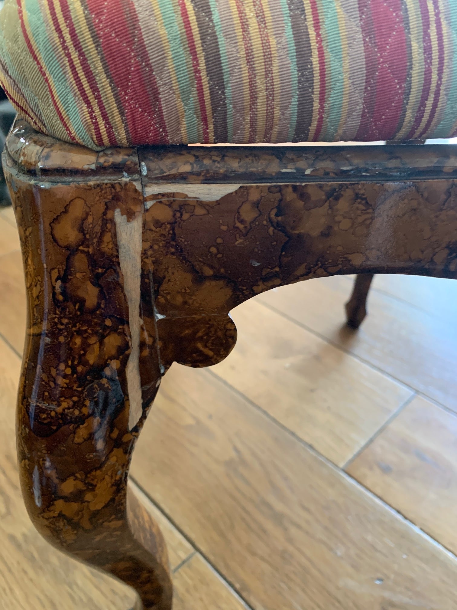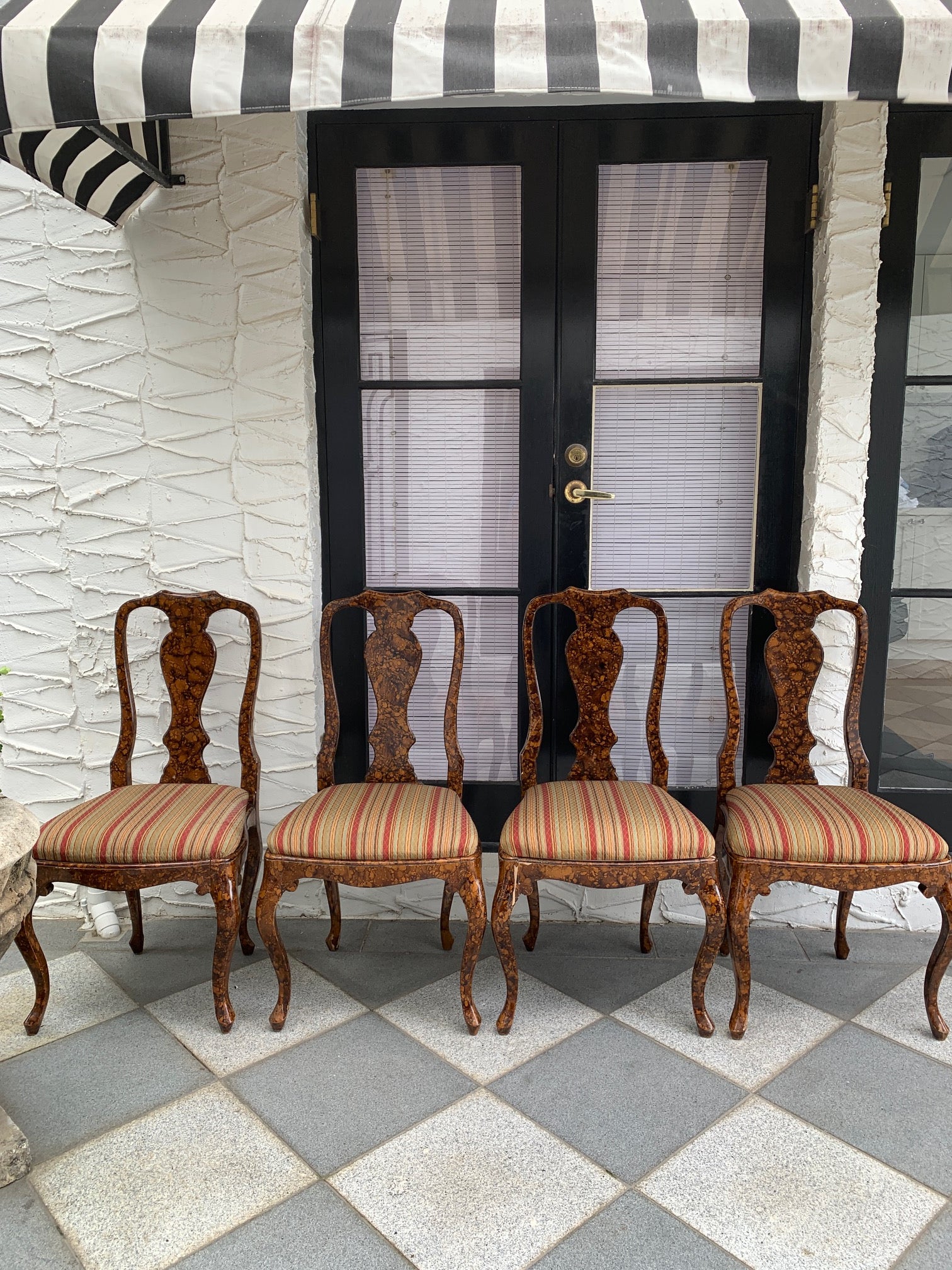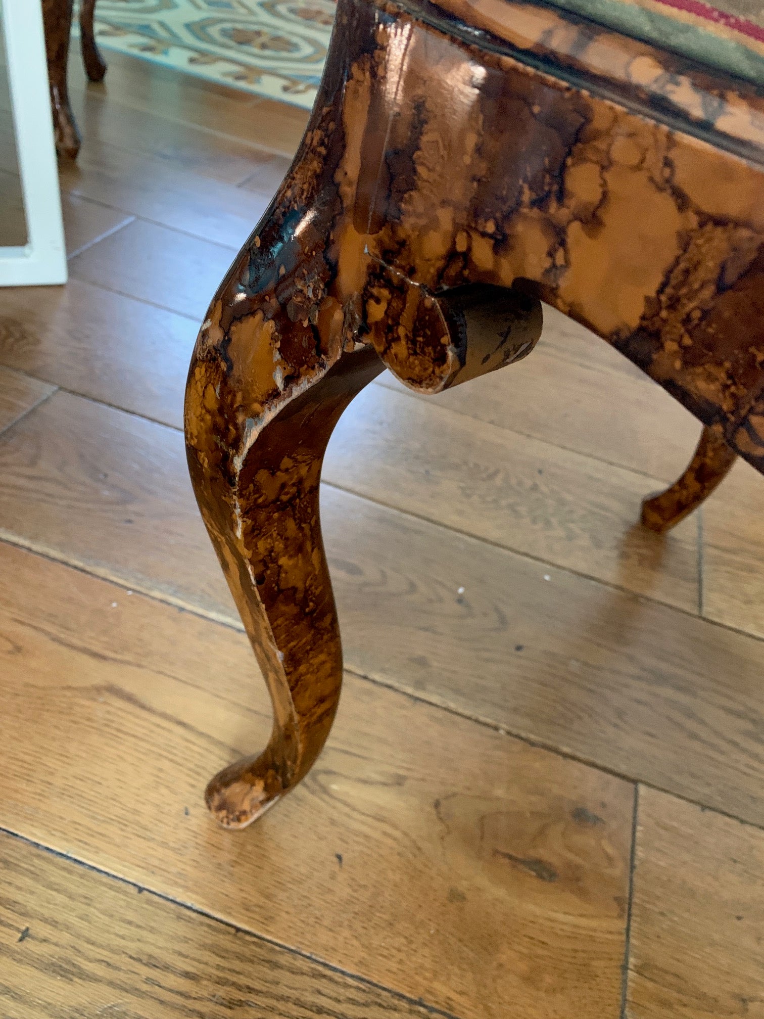 Queen Anne style set of chairs with a painted faux burlwood finish.