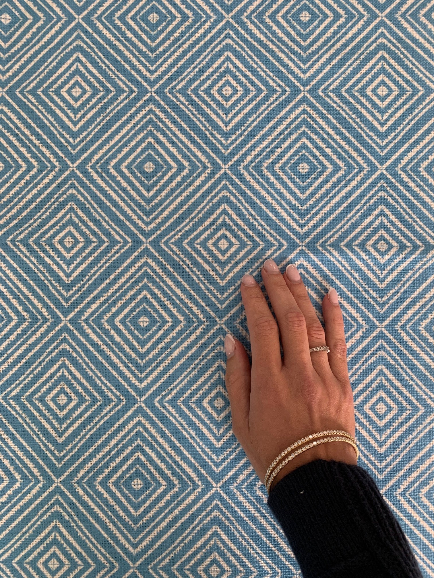 Sky blue tones and white in diamond pattern. Fabulous to make cushions, lampshades or an upholstery project