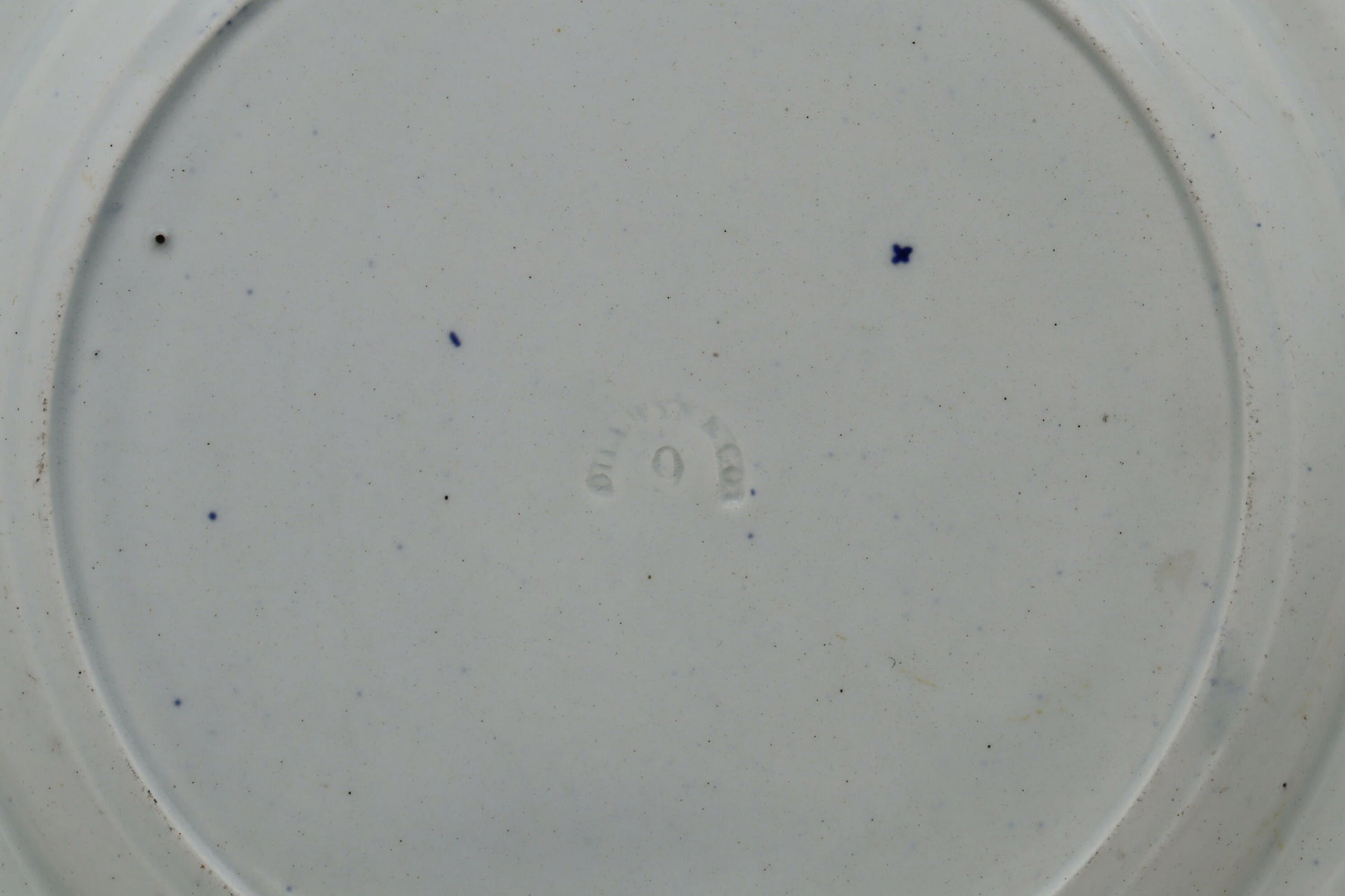 This blue and white Swansea earthenware plate is decorated with their transfer printed standard Willow pattern. It is in very good condition, but does have some smudging of the pattern in spots, mainly to the border. It measures 262 mm (10.25 inches) in diameter, and stands 25 mm (1 inch) high. It carries the impressed Dillwyn & Co. mark and dates from the period 1811-17.