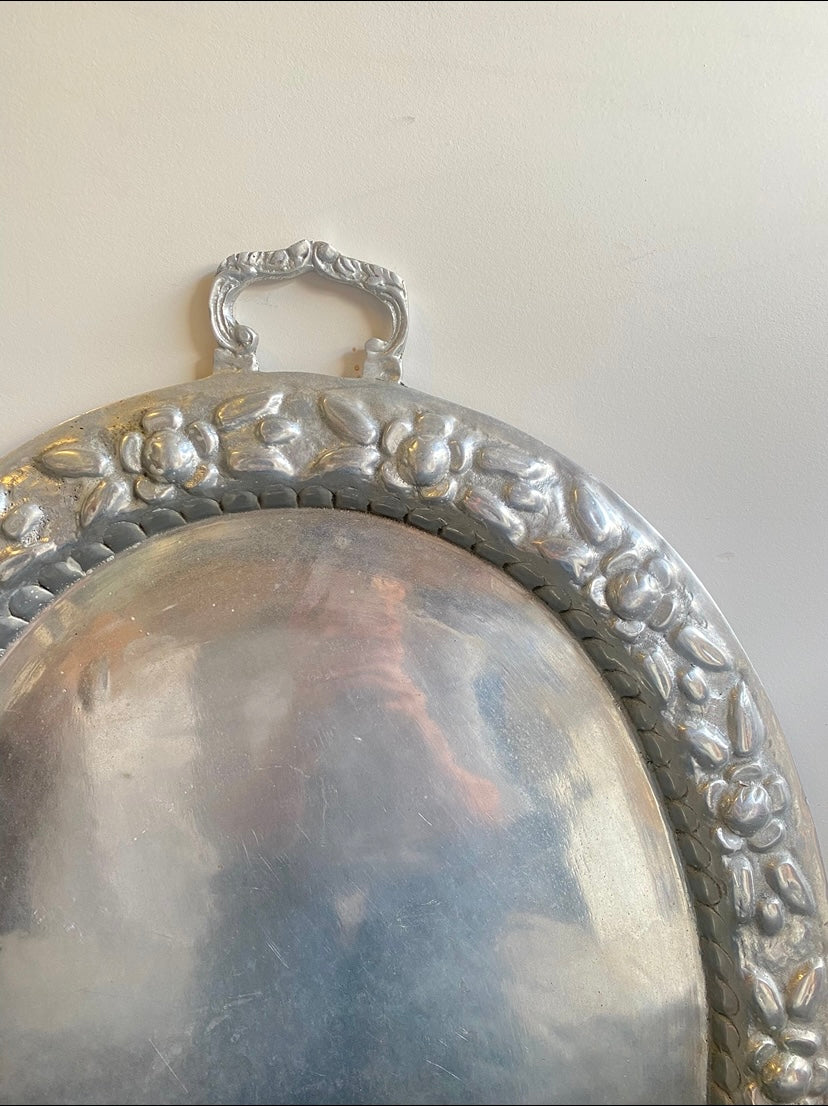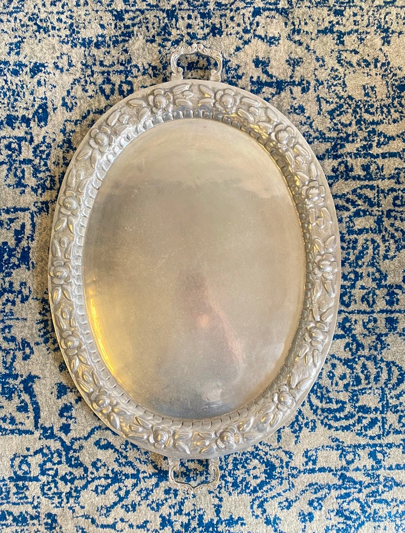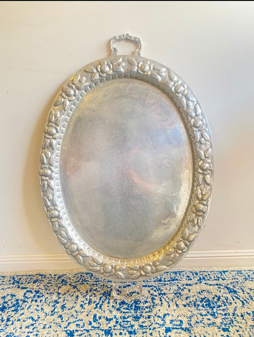 Oversized heavy metal tray with handles. Gorgeous piece for a coffee table
