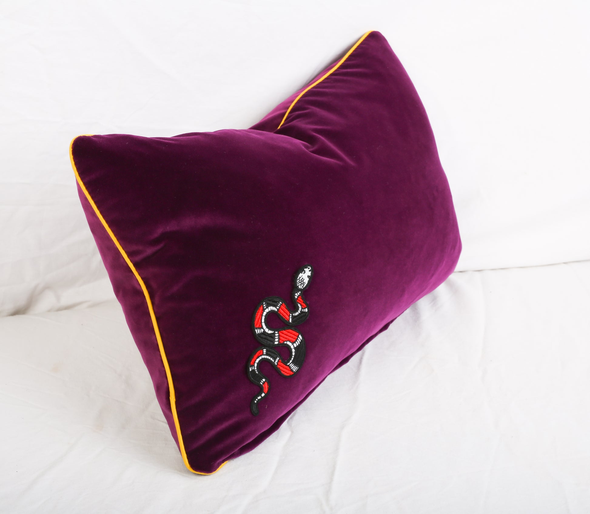 A unique way to create interest to your cushion mix, our couture inspired purple velvet cushion with contrast yellow piping is a design statement.