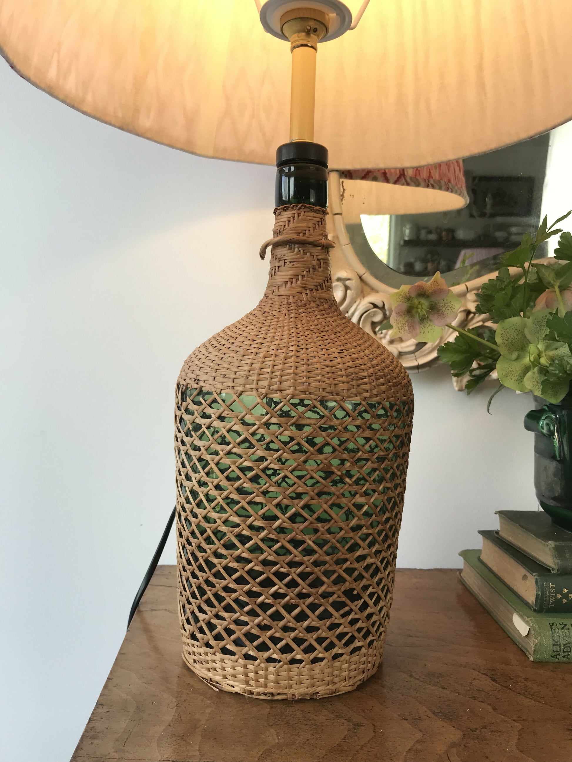 Fantastic old Italian (Chianti) bottle. Fitted with a quality brass fitting. There is some damage to the rattan on one side.