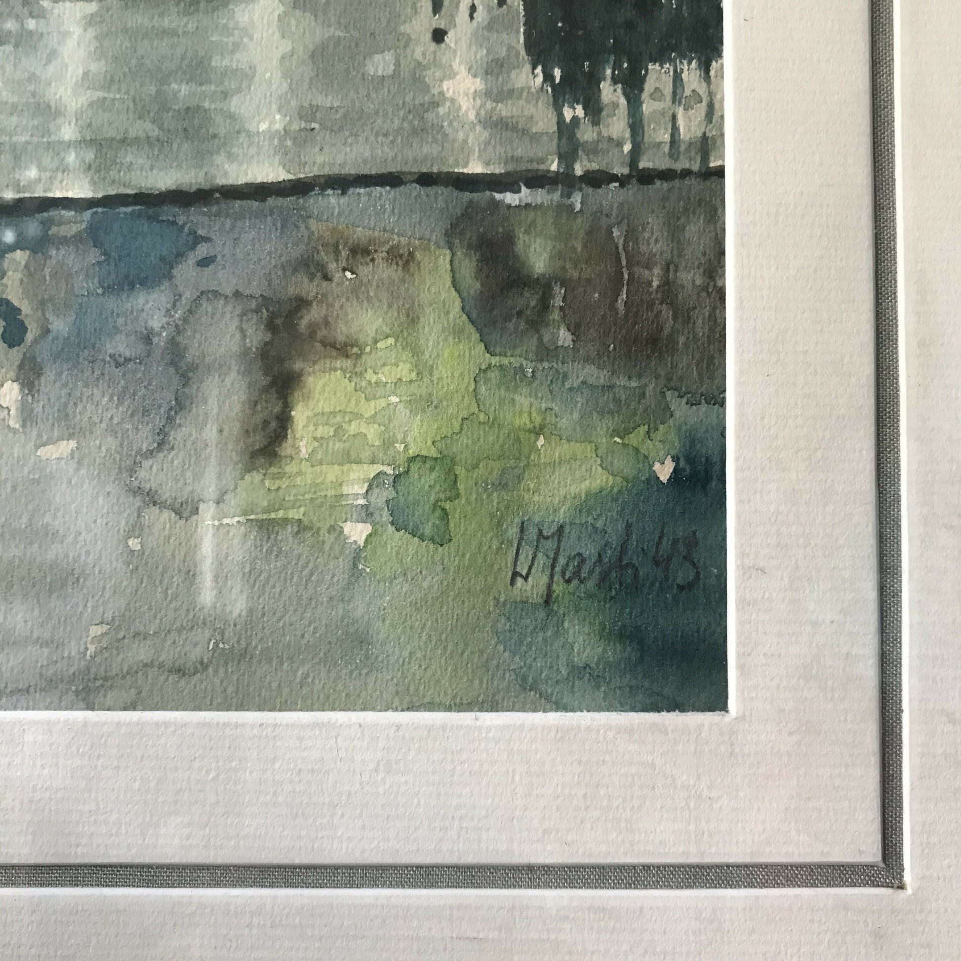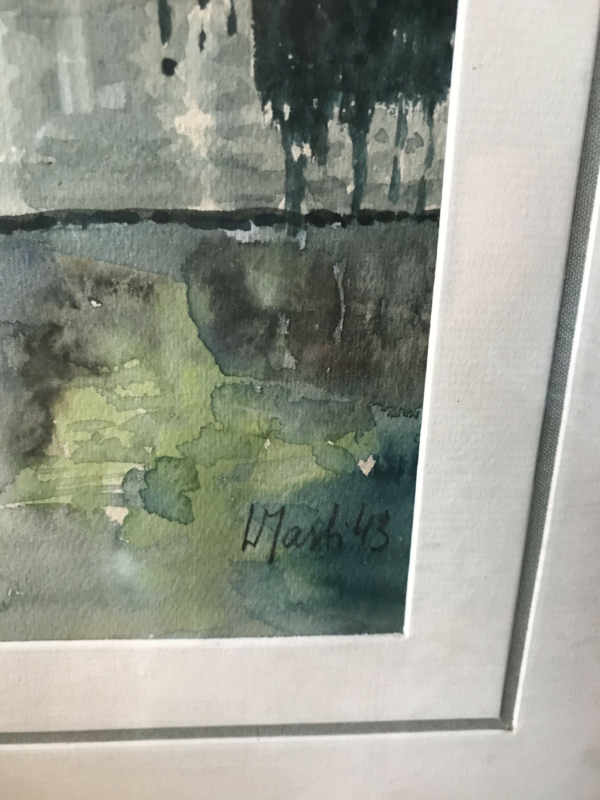 This signed work is dated 1943. Beautifully mounted and framed behind glass. 36cm x 42cm. Located in Collingwood Melbourne and available for pickup or post. Postage will incur an additional shipping charge, payable after purchase is completed. The buyer will be contacted by the seller.